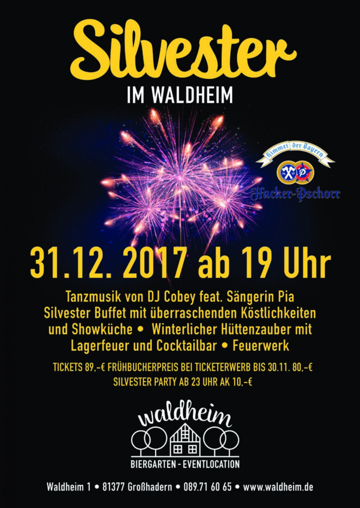 »Silvester im Waldheim« eine Veranstaltung von Waldheim in München ![]() exists ![]() Tanzmusik von DJ Cobey feat. Sängerin Pia