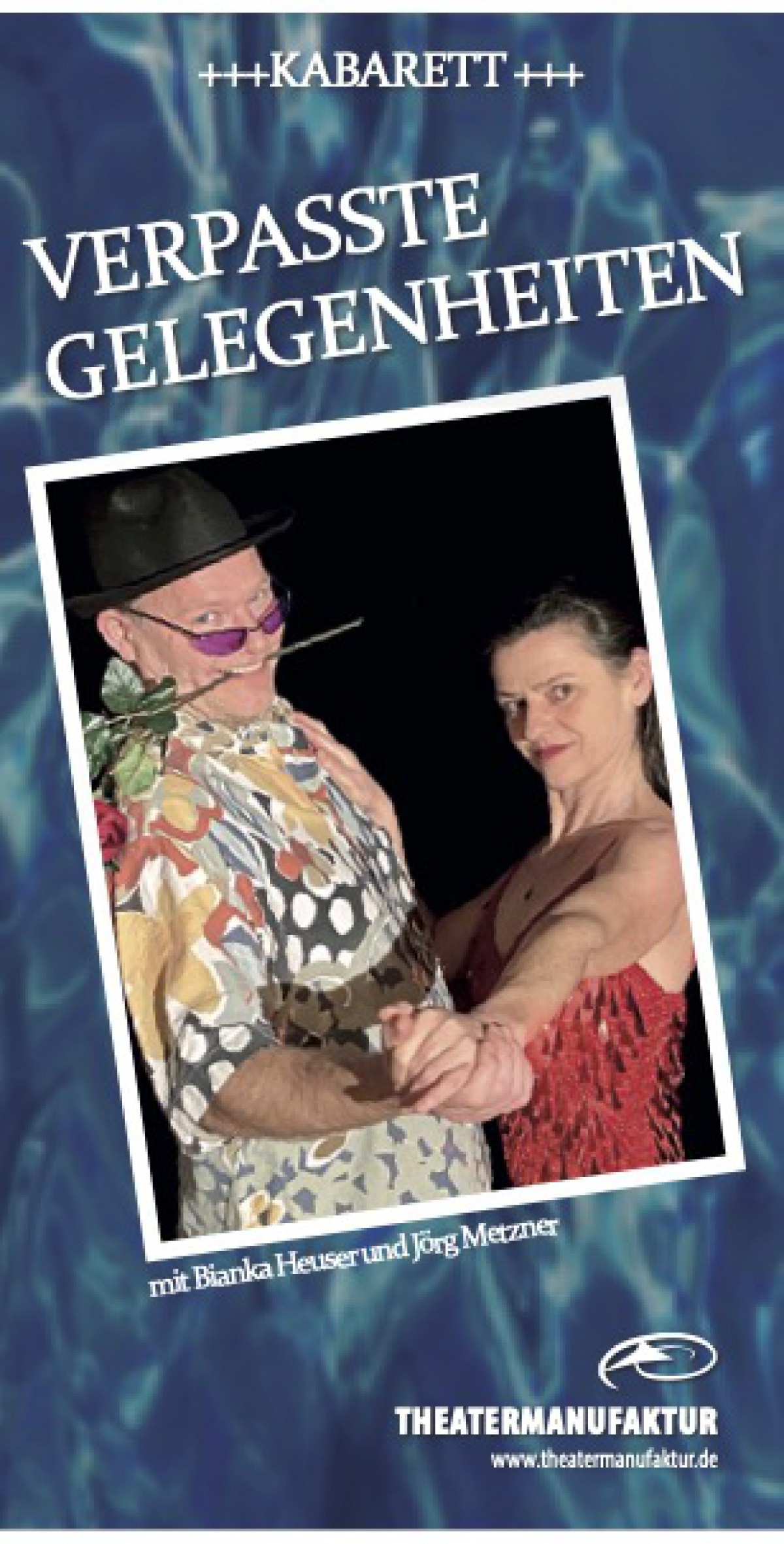 Verspricht ein Rendezvous lebenslange Haltbarkeit oder sollte man eine Umtauschgarantie vereinbaren? Wollen wir lebenslänglich oder Kurzzeitparken? Lohnt es sich, gebrauchte Ehemänner umzutauschen? Wer haftet bei Mängeln oder Abnutzungserscheinungen? Ist alles, was man hätte haben können, besser als das, was man hat? Das fragt sich der Bauer beim Verlust seiner Fahrerlaubnis. Ältere Menschen haben den Luxus zu vergessen, was sie verpasst haben, denn mit den Jahren werden selbst Eselsbrücken marode. Lügen sind der Klebstoff für glückliche Beziehungen. Dafür gibt es Gebrauchsanweisungen, die Ehen um Jahre verlängern können. Ein rundherum spritziges Programm auf Spurensuche nach Gelegenheiten, die „Mann und Frau“ besser nicht verpassen sollten. Oder nutzen Sie einfach die Gelegenheit, über alles Verpasste zu lachen! Es spielen: Bianka Heuser und Jörg Metzner Kartenpreis: 84,00 € inkl. 4-Gänge-Menü, Aperitif und der künstlerischen Darbietung