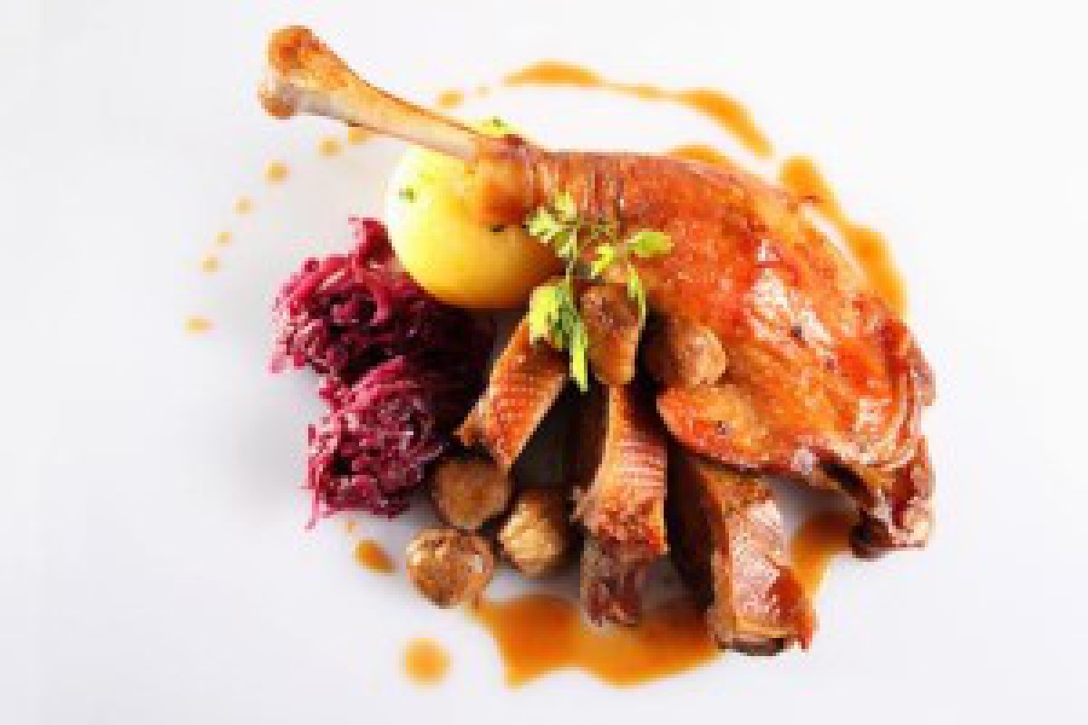 Vorspeise zimtige Maronencremesuppe mit glatter Petersilie Hauptgericht Martingsganskeule mit Apfelrotkohl und gebackenem Semmelkloß Dessert frei wählbar aus der Speisenkarte