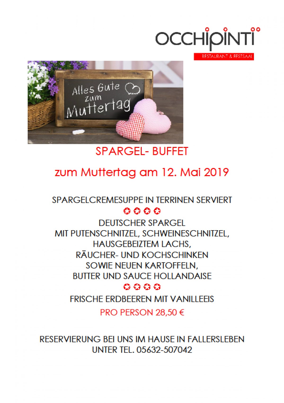 »Muttertag 2019« eine Veranstaltung von Occhipinti Restaurant in Wolfsburg exists ![]() Spargel-Buffet zum Muttertag