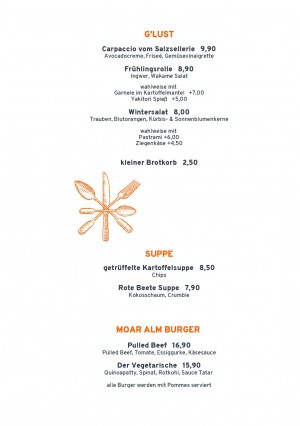 Aktuelle Speisekarte von Moar Alm. in Sachsenkam