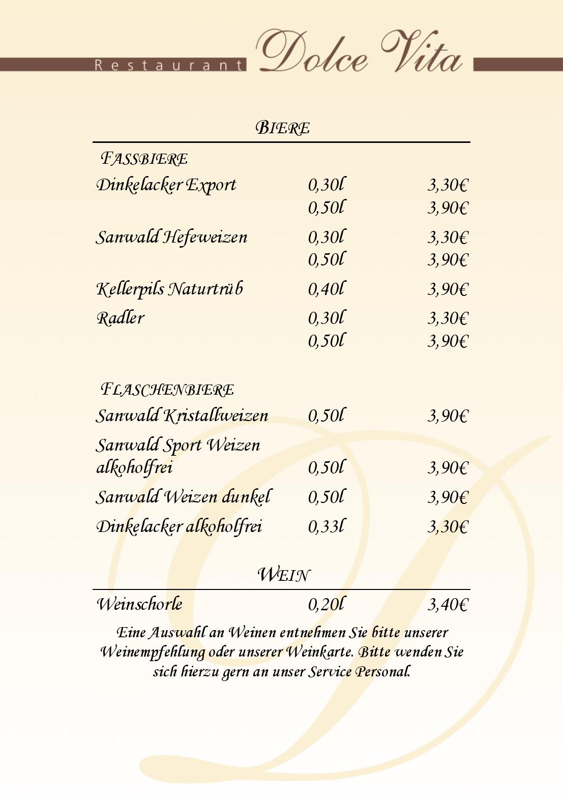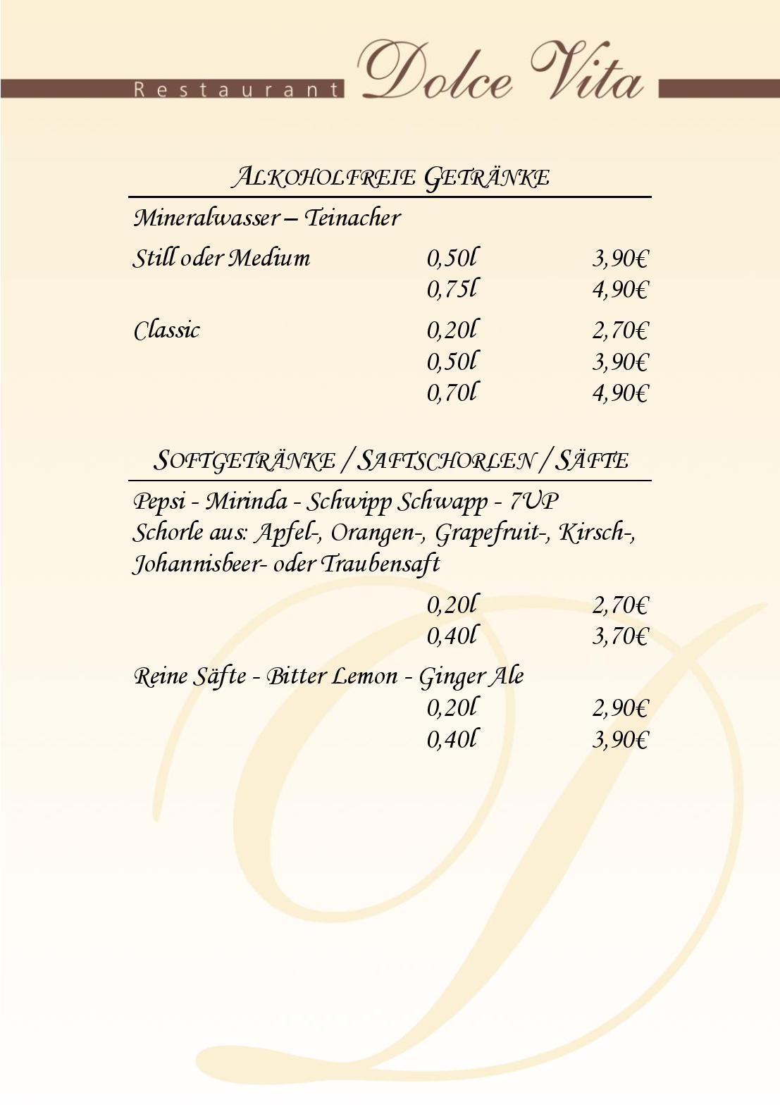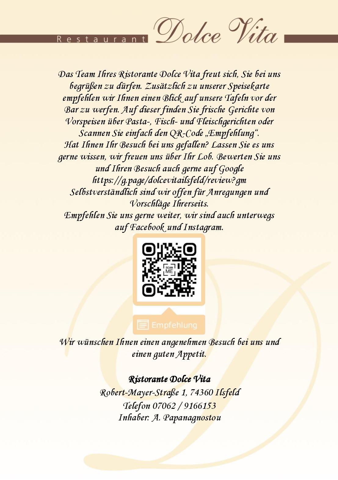 Download der Speisekarte des Dolce Vita Restaurant in Ilsfeld im PDF-Format