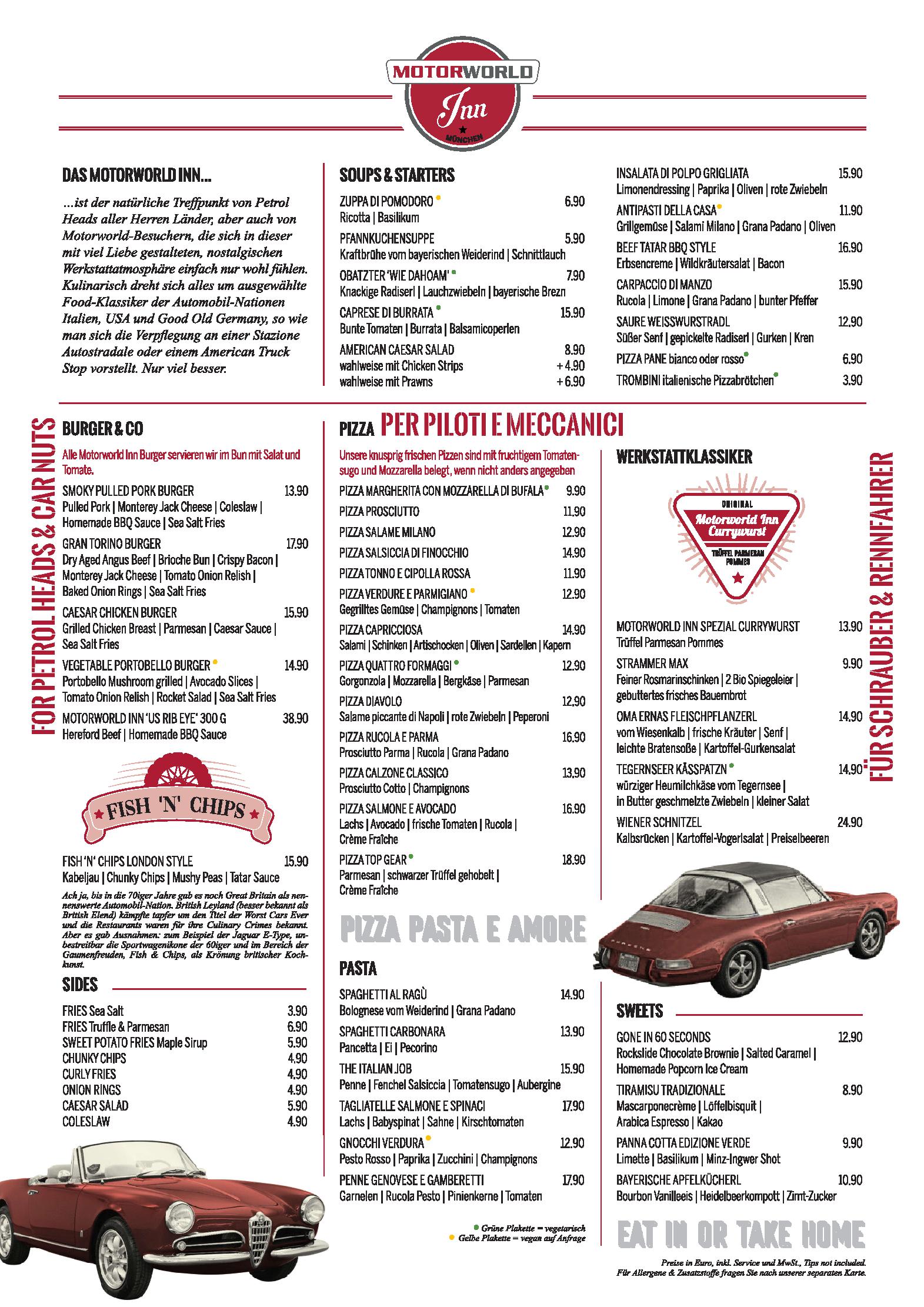 Download der Speisekarte des Restaurant MOTORWORLD Inn München in München im PDF-Format