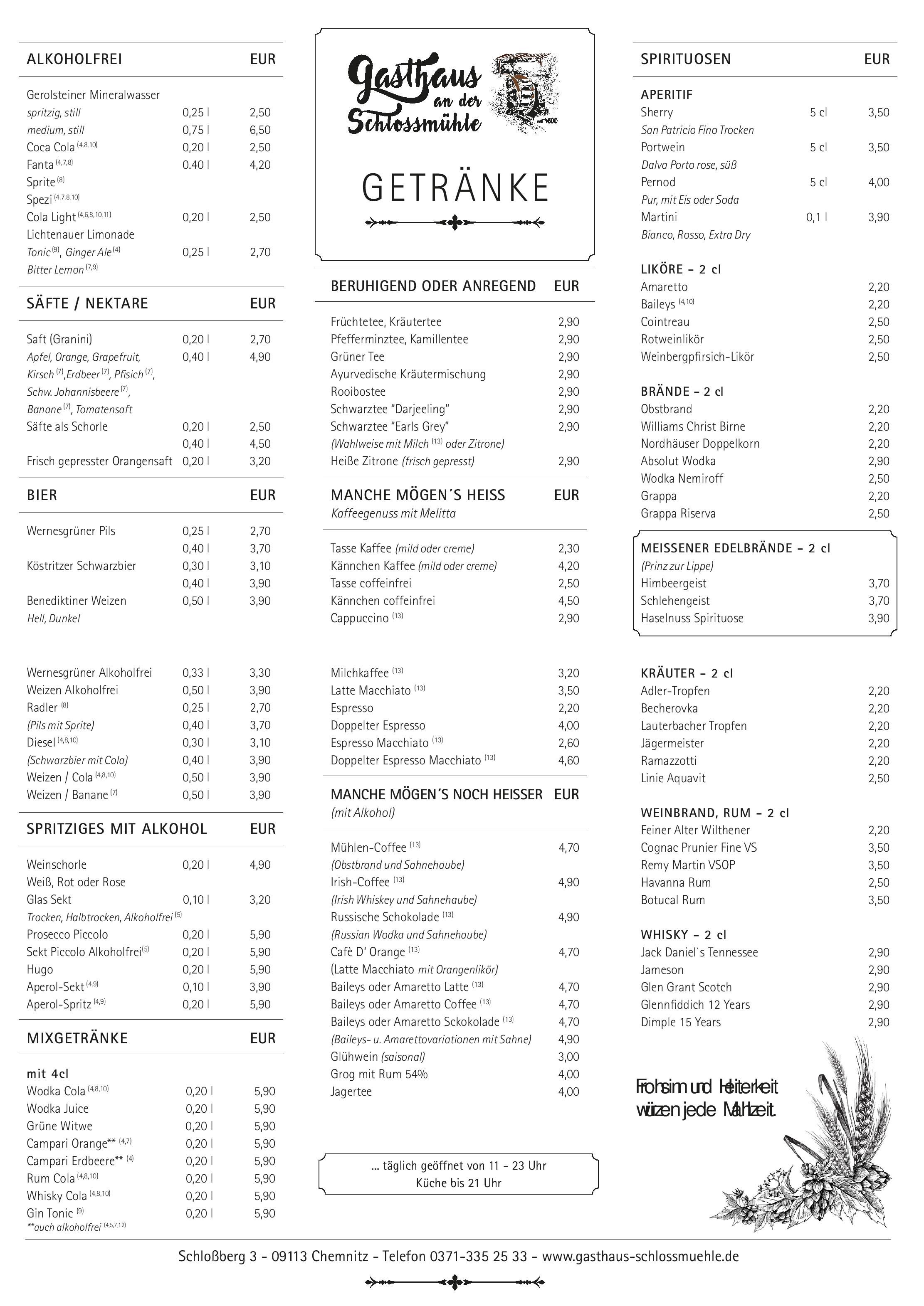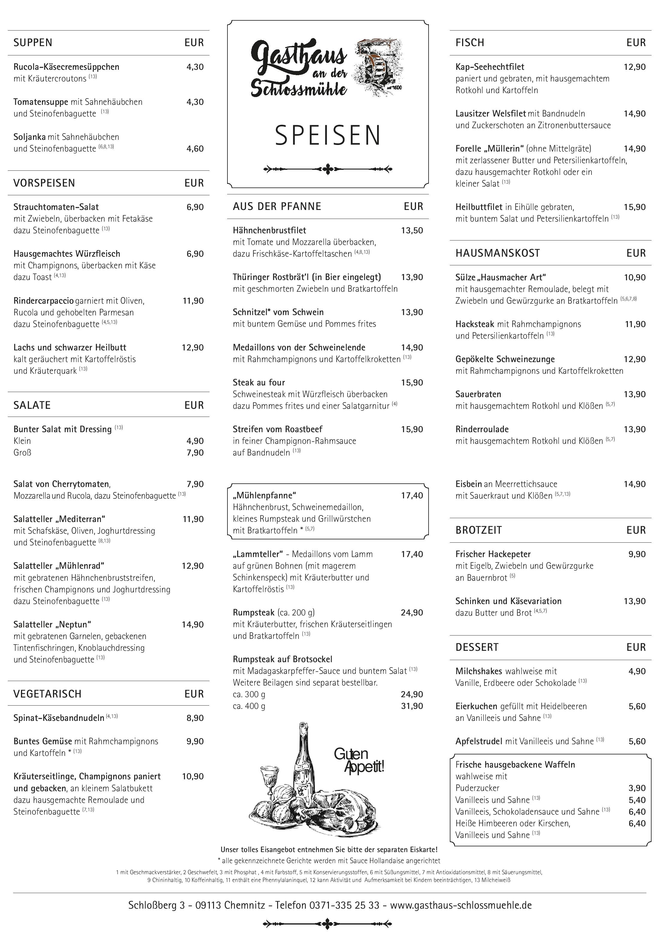 Download der Speisekarte des Restaurant Gasthaus aposAn der Schloßmühleapos in Chemnitz im PDF-Format