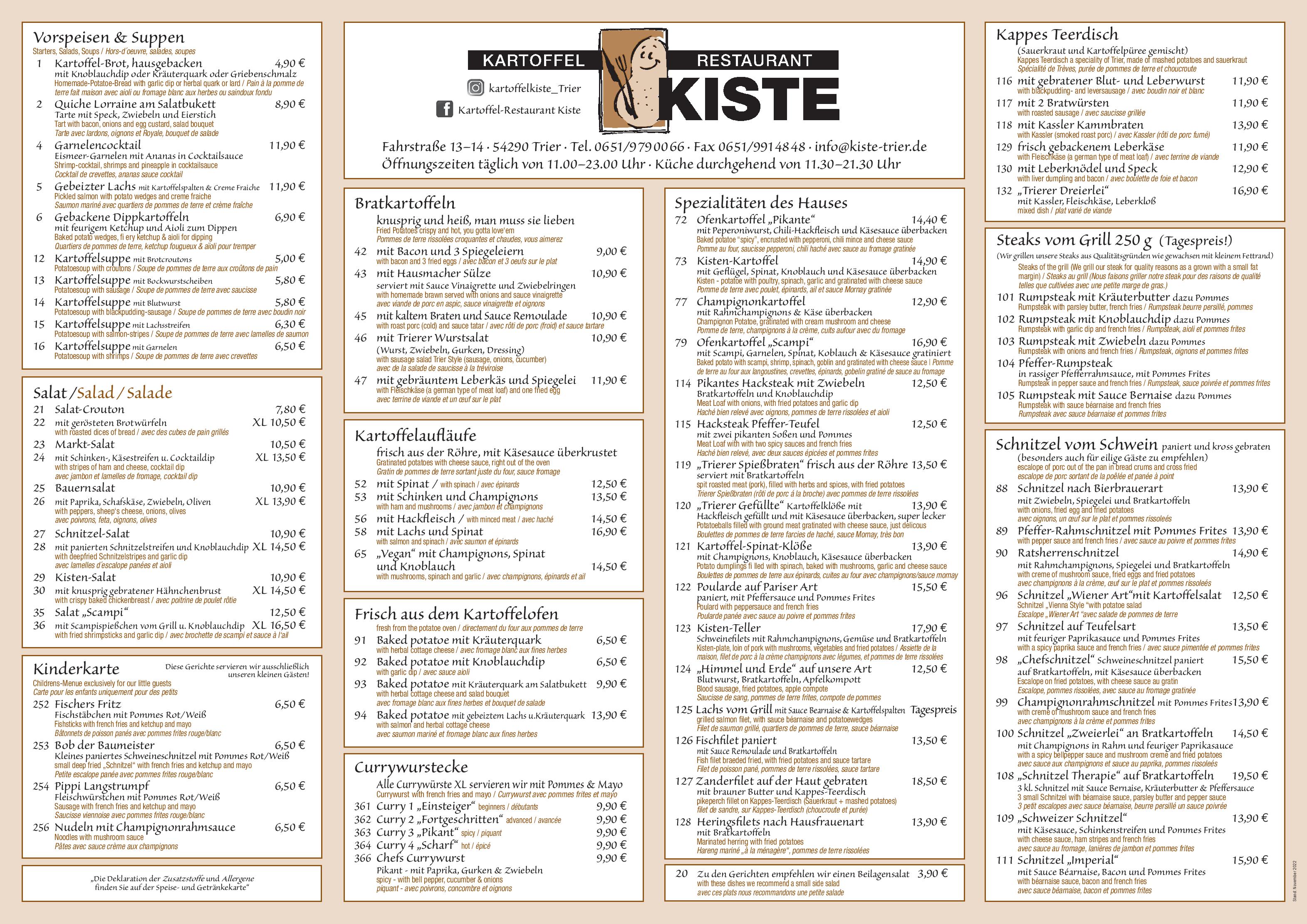© Kartoffelrestaurant Kiste in Trier. Stand 07.08.2023