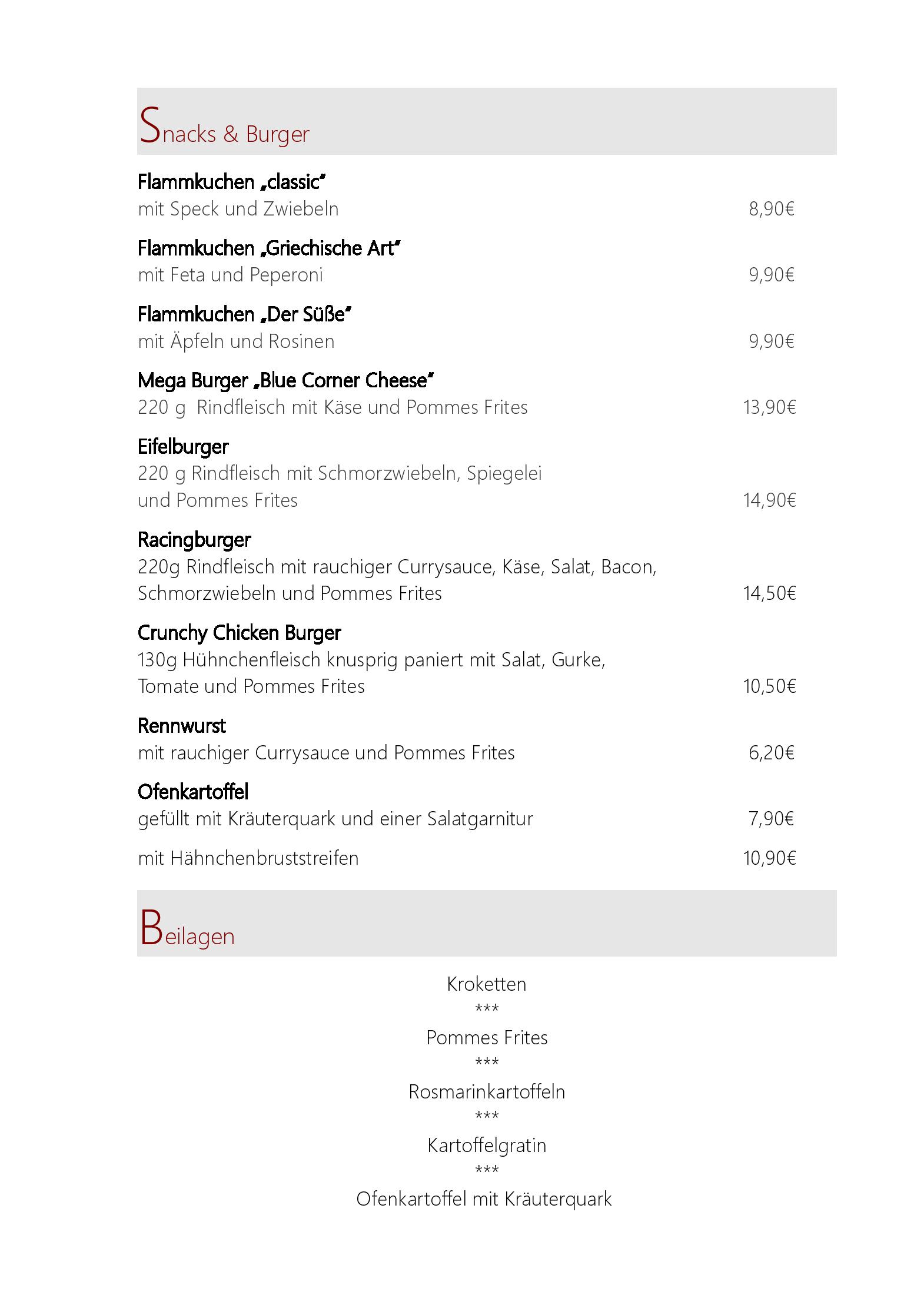 Download der Speisekarte des Restaurant Blaue Ecke Nürburgring in Adenau im PDF-Format
