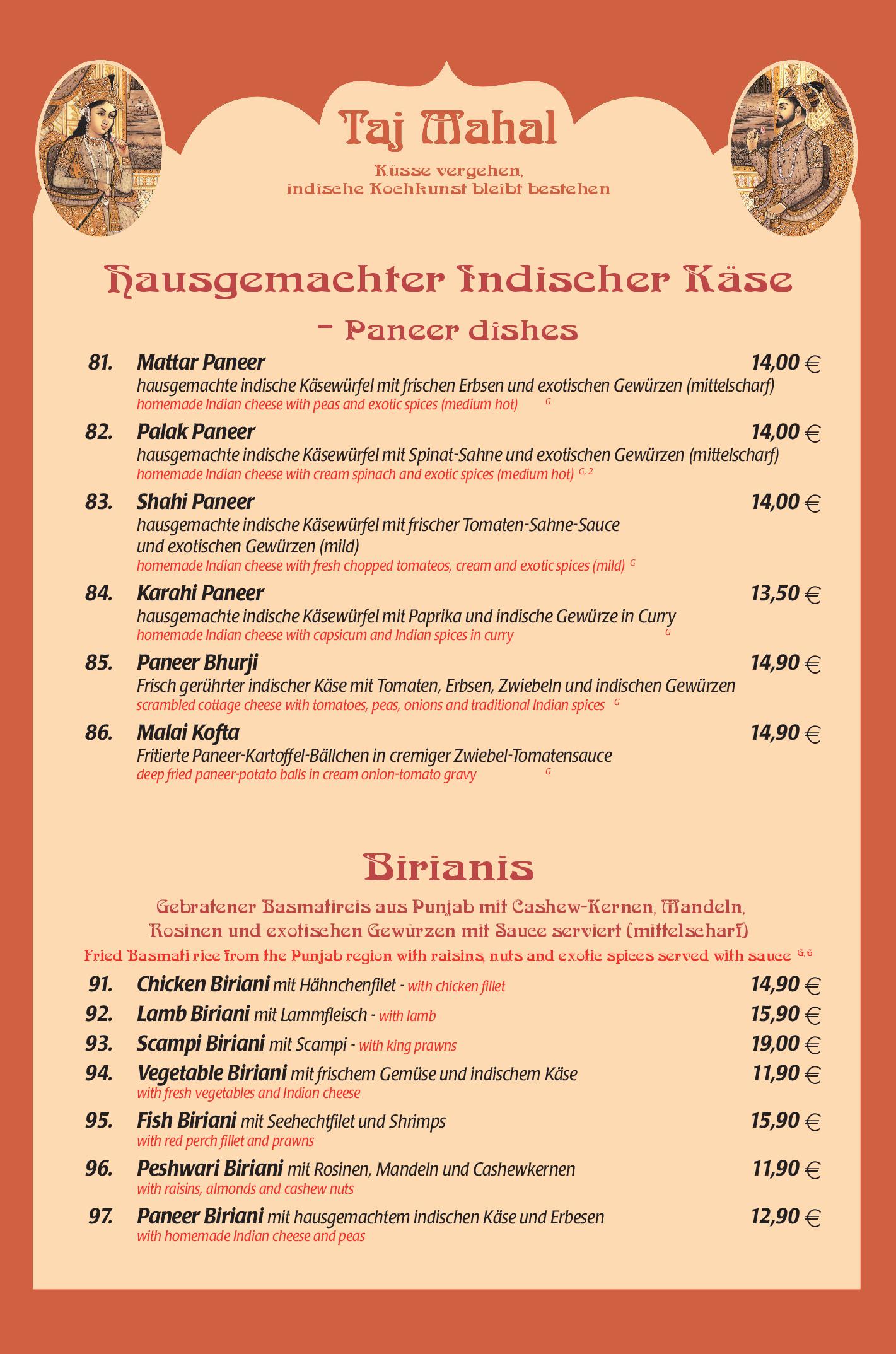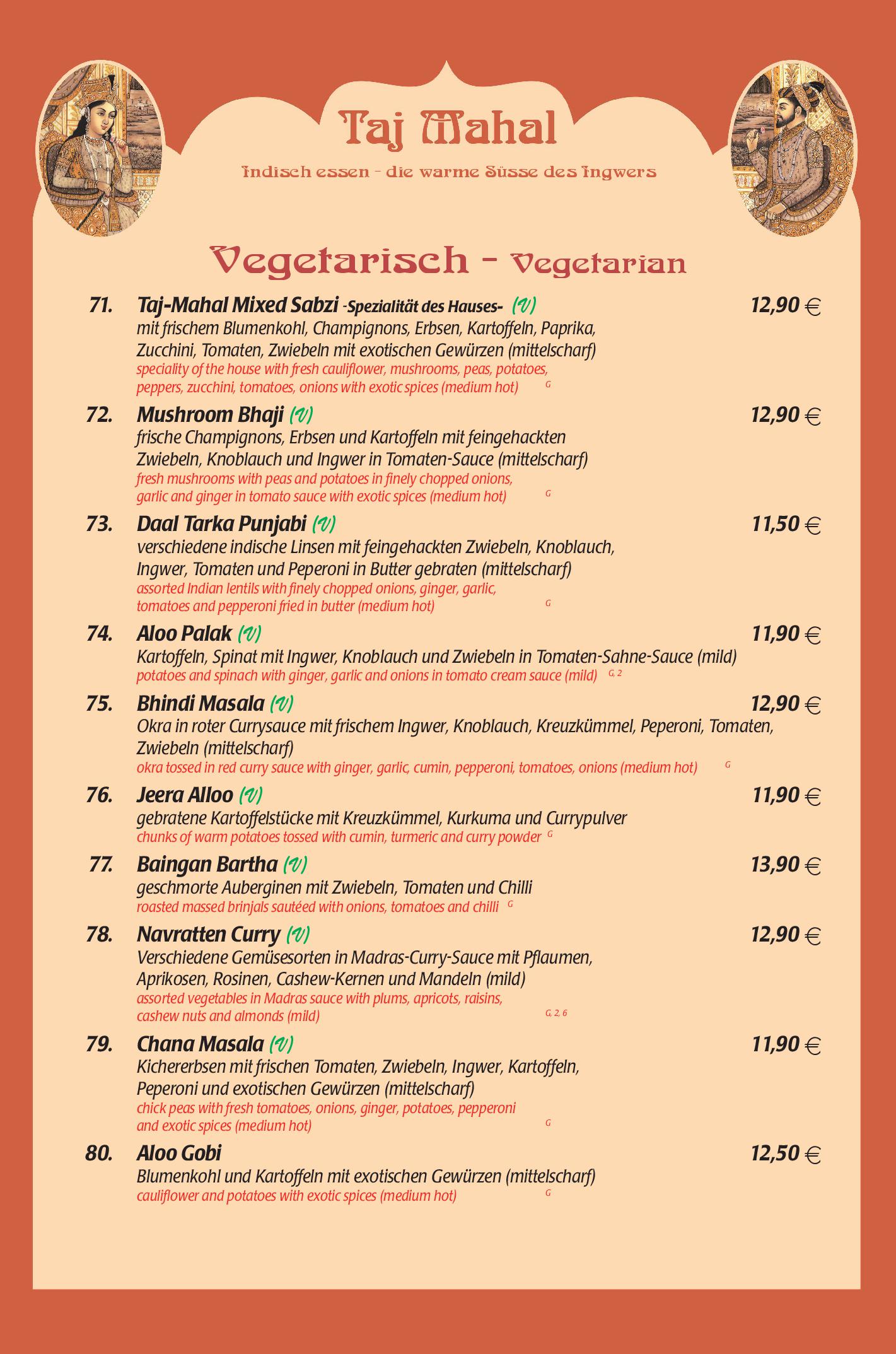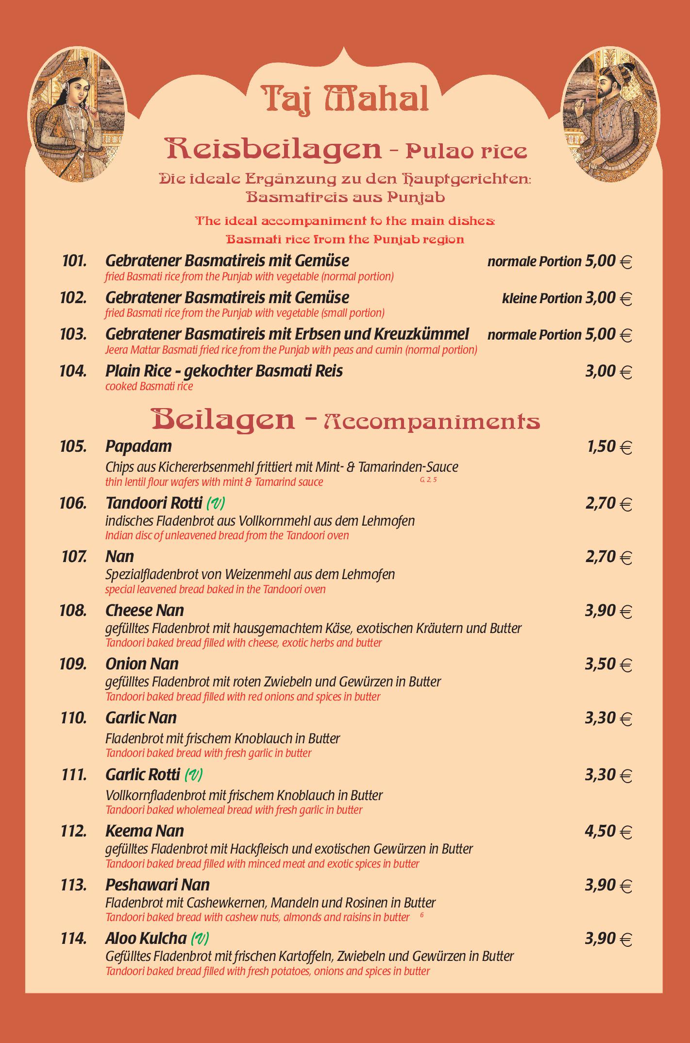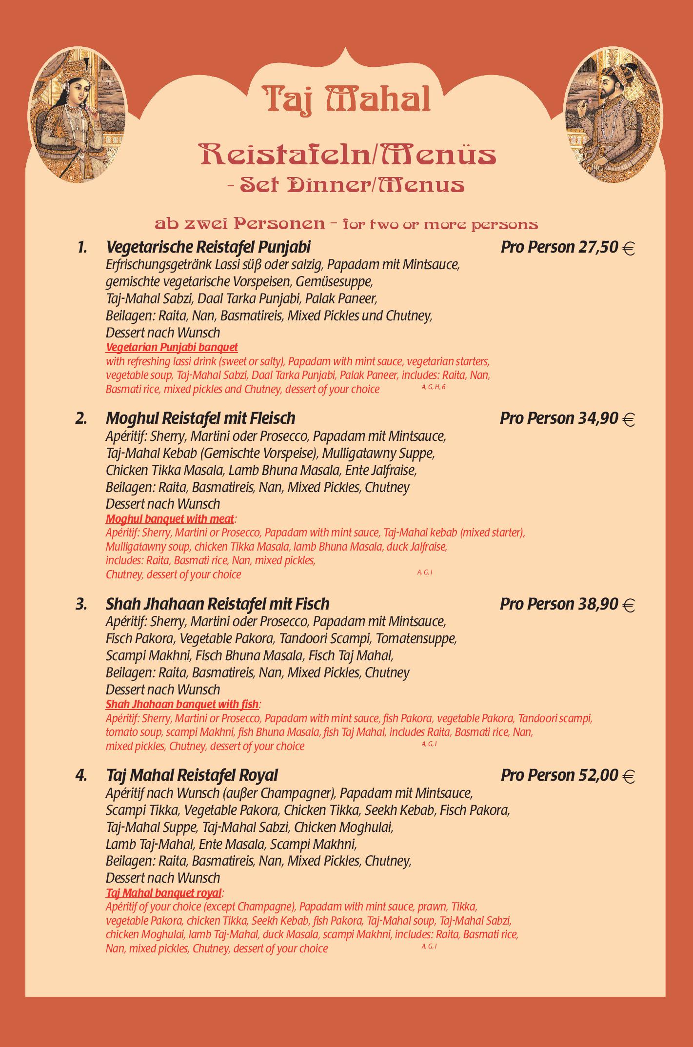Download der Speisekarte des Restaurant Taj Mahal in Hannover im PDF-Format