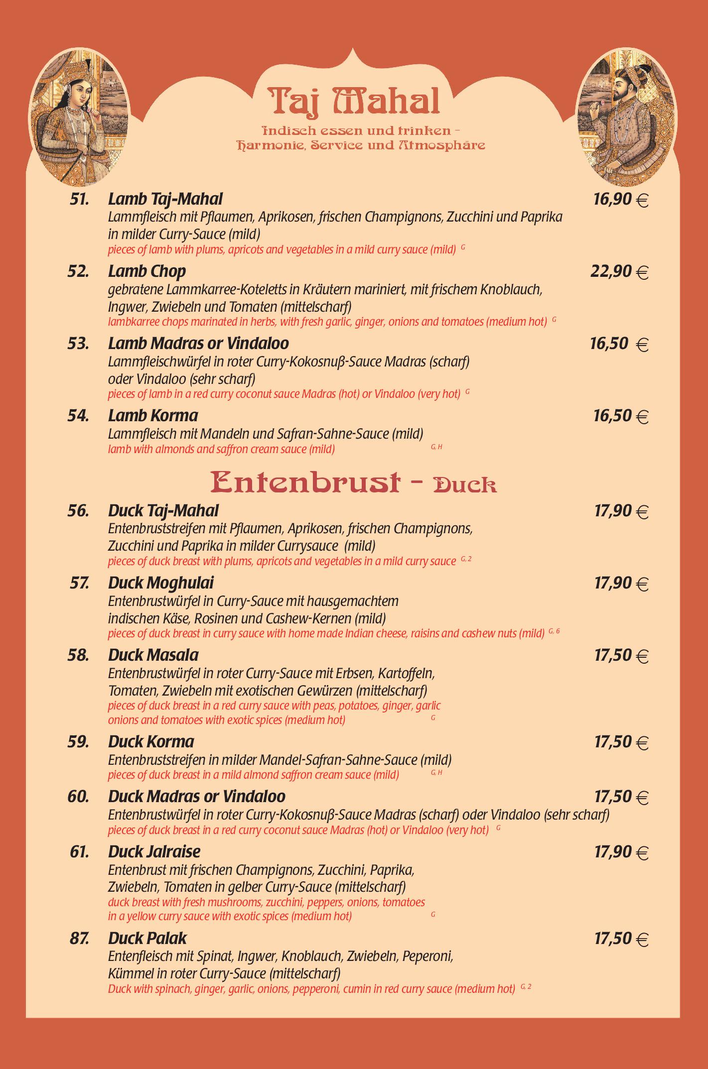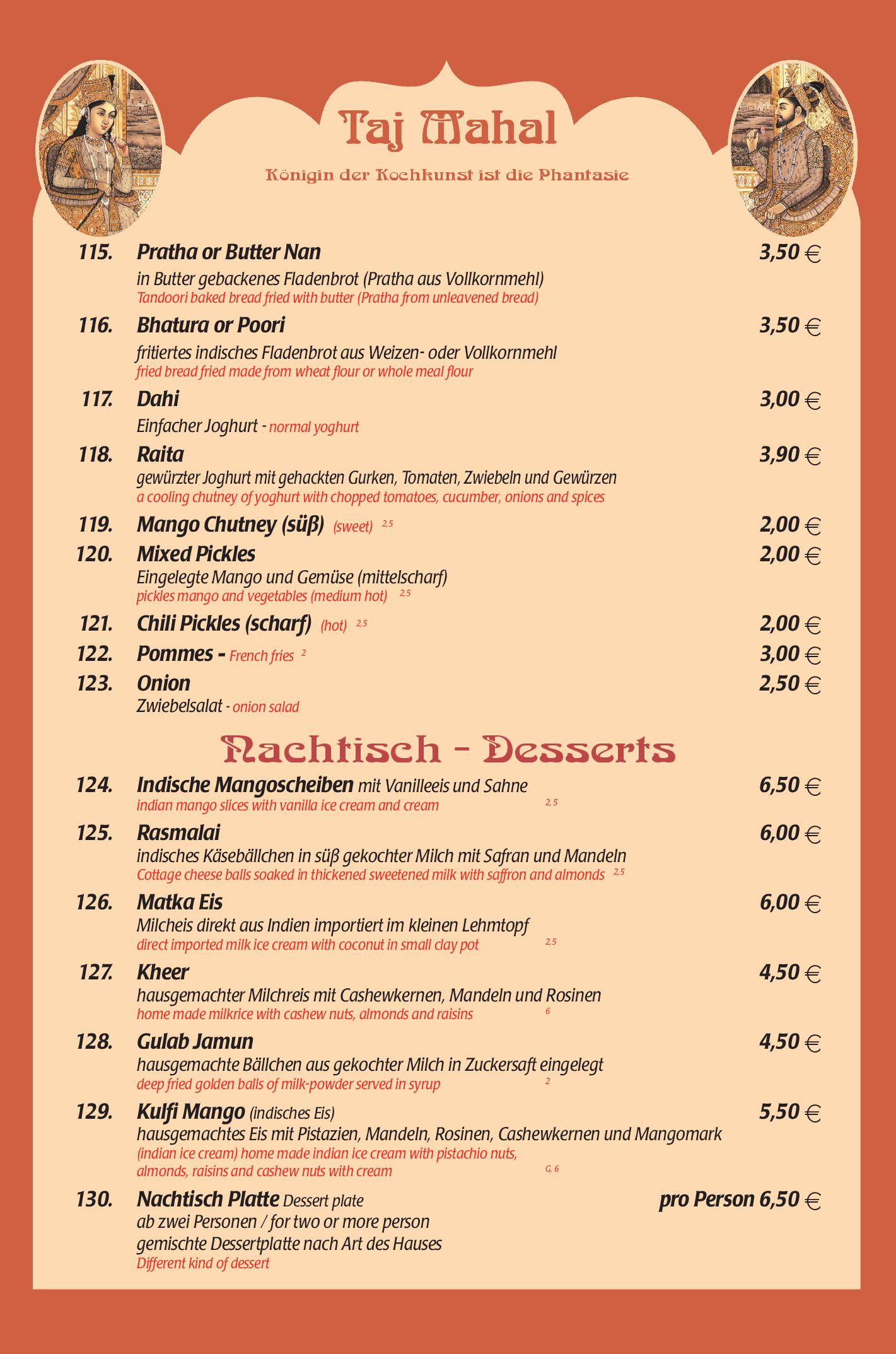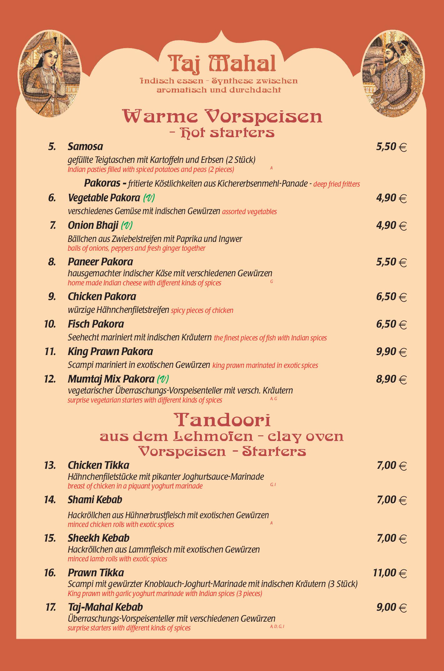 Download der Speisekarte des Restaurant Taj Mahal in Hannover im PDF-Format