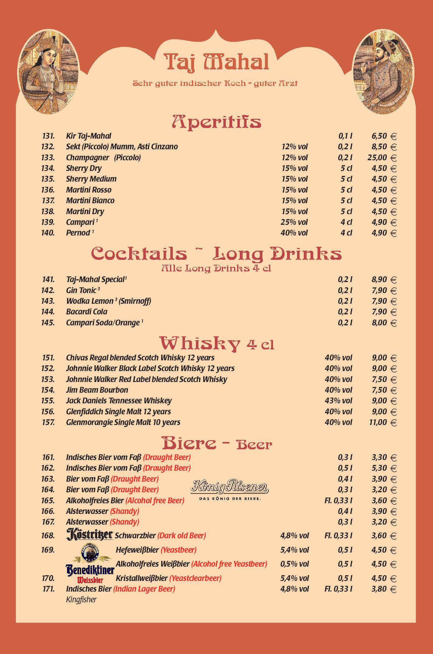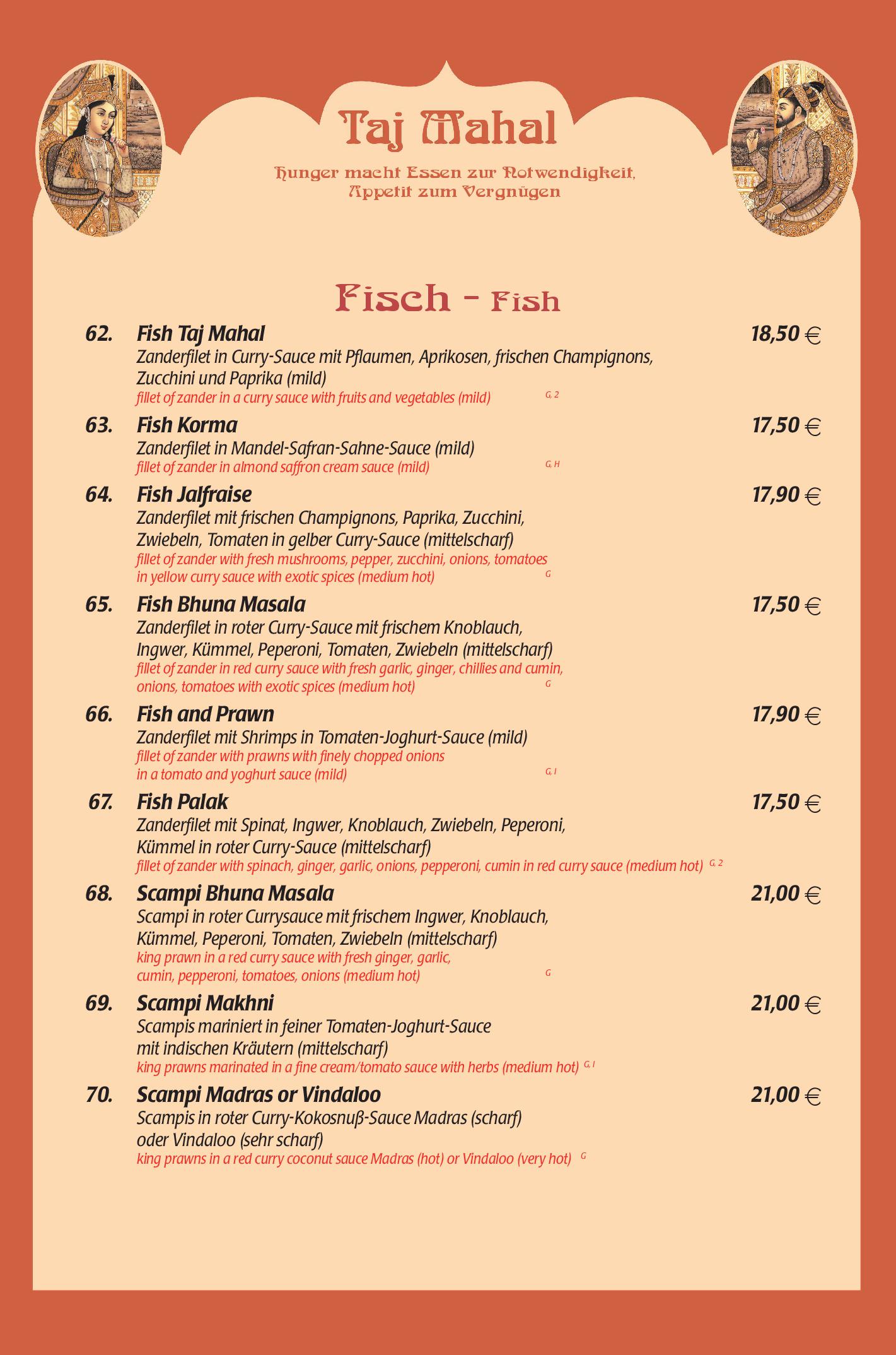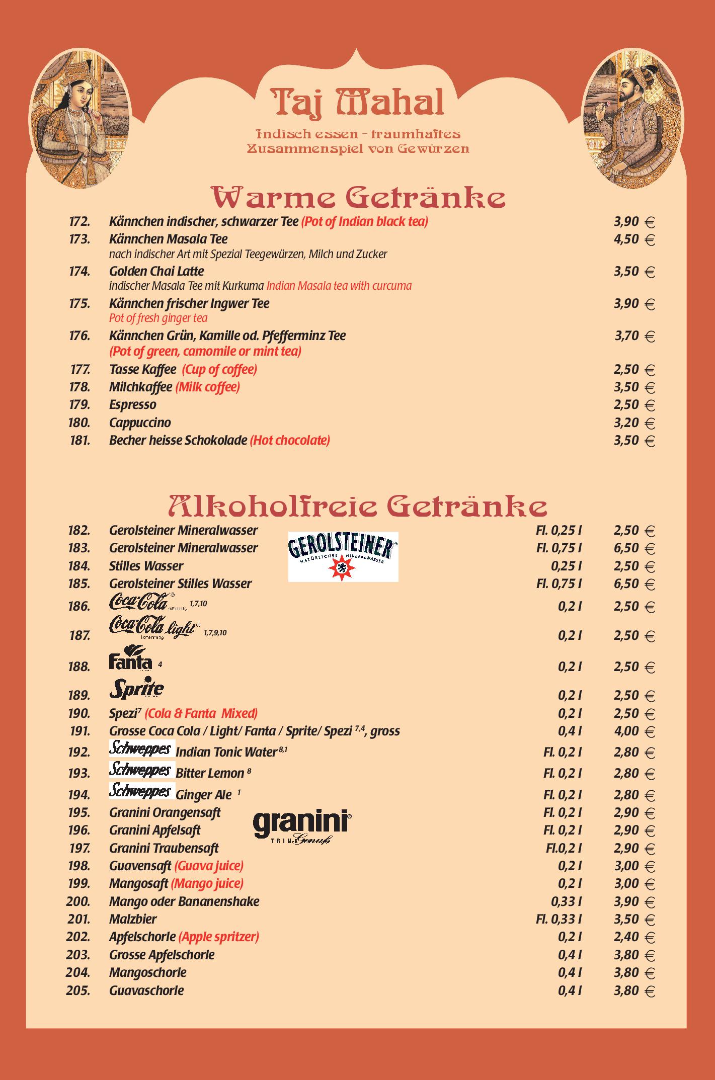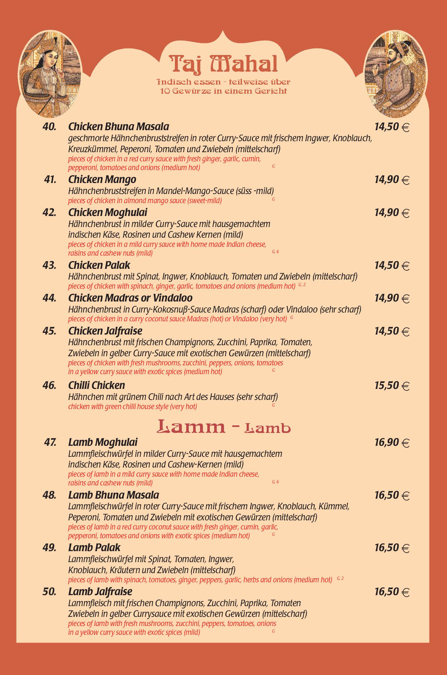 Download der Speisekarte des Restaurant Taj Mahal in Hannover im PDF-Format