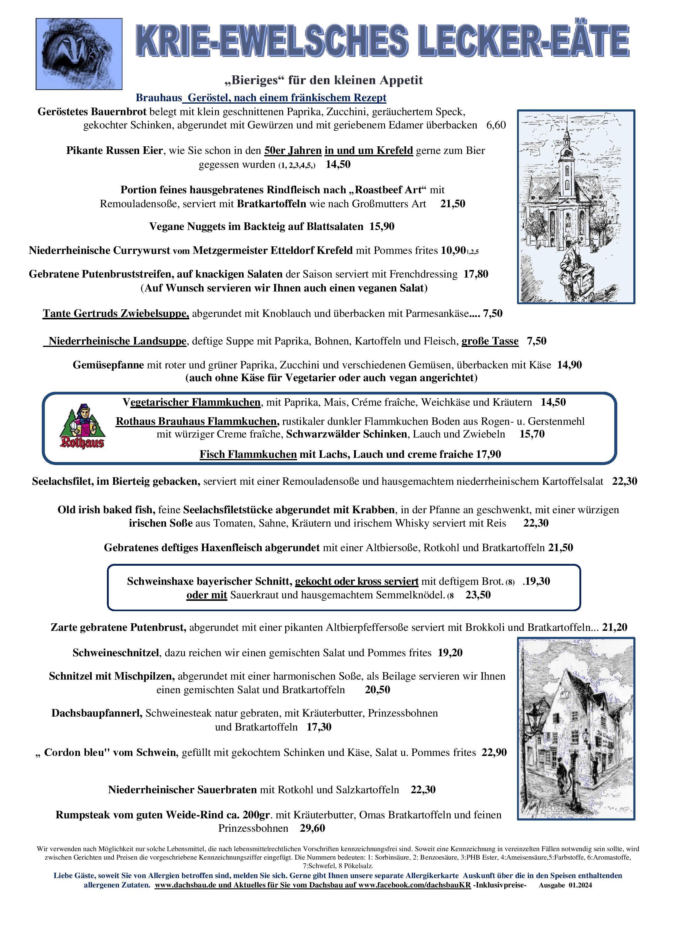 Download der Speisekarte des Restaurant Dachsbau Haus der Biere in Krefeld im PDF-Format