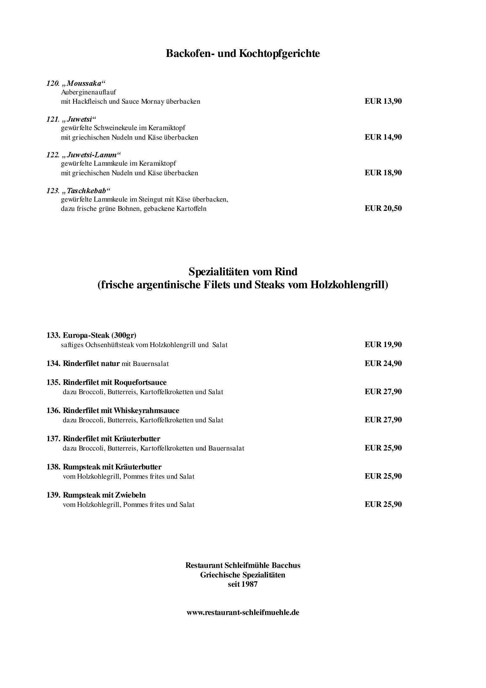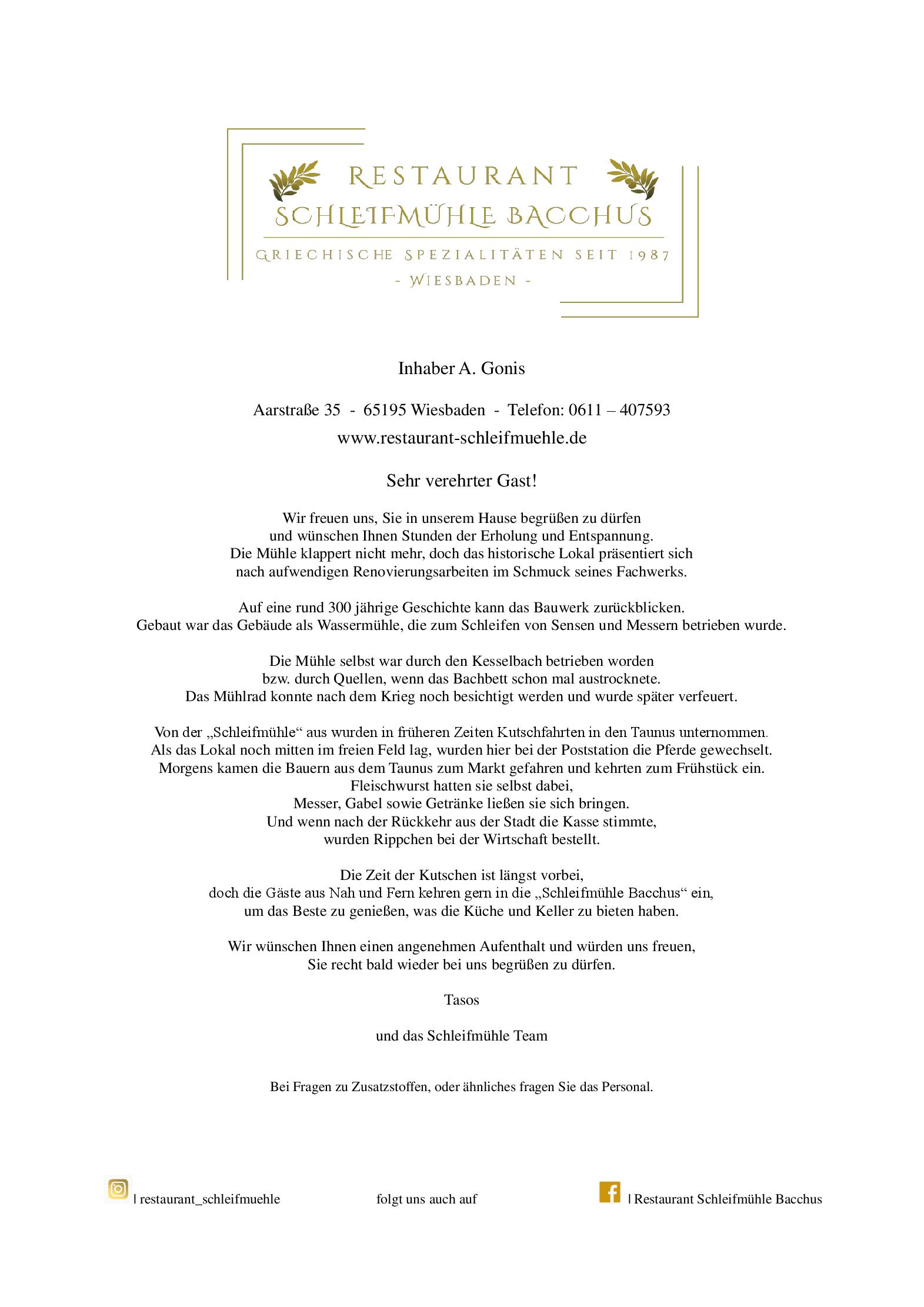 Download der Speisekarte des Restaurant Schleifmühle Bacchus in Wiesbaden im PDF-Format