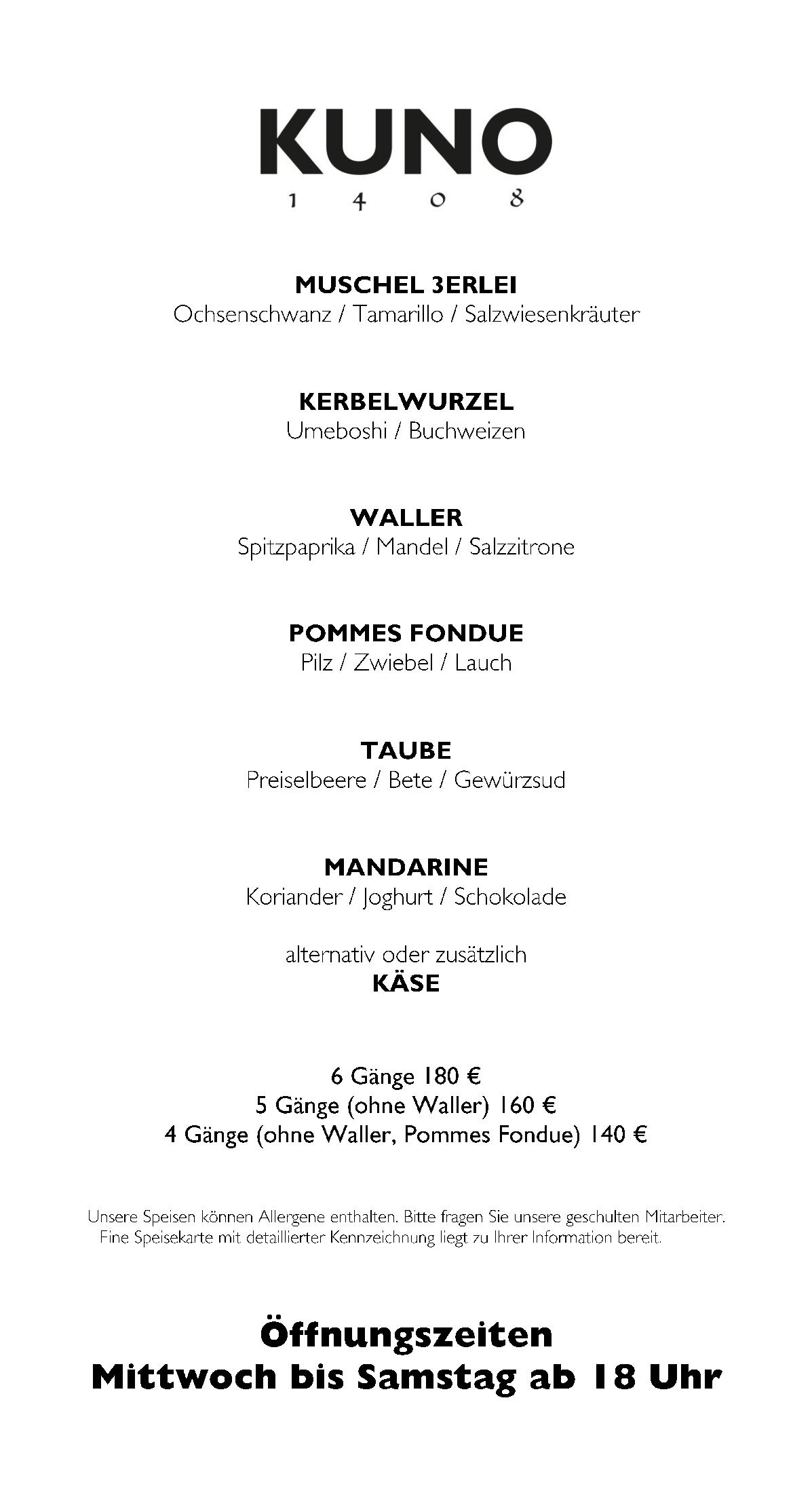 Download der Speisekarte des Restaurant KUNO 1408 in Würzburg im PDF-Format
