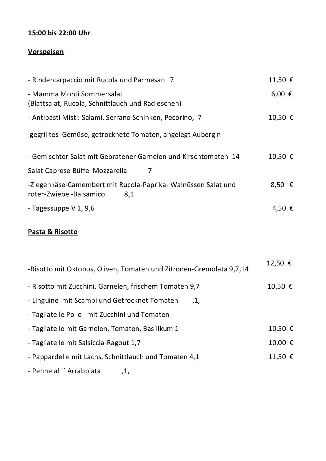 Download der Speisekarte des Restaurante Mamma Monti Bar in Berlin im PDF-Format