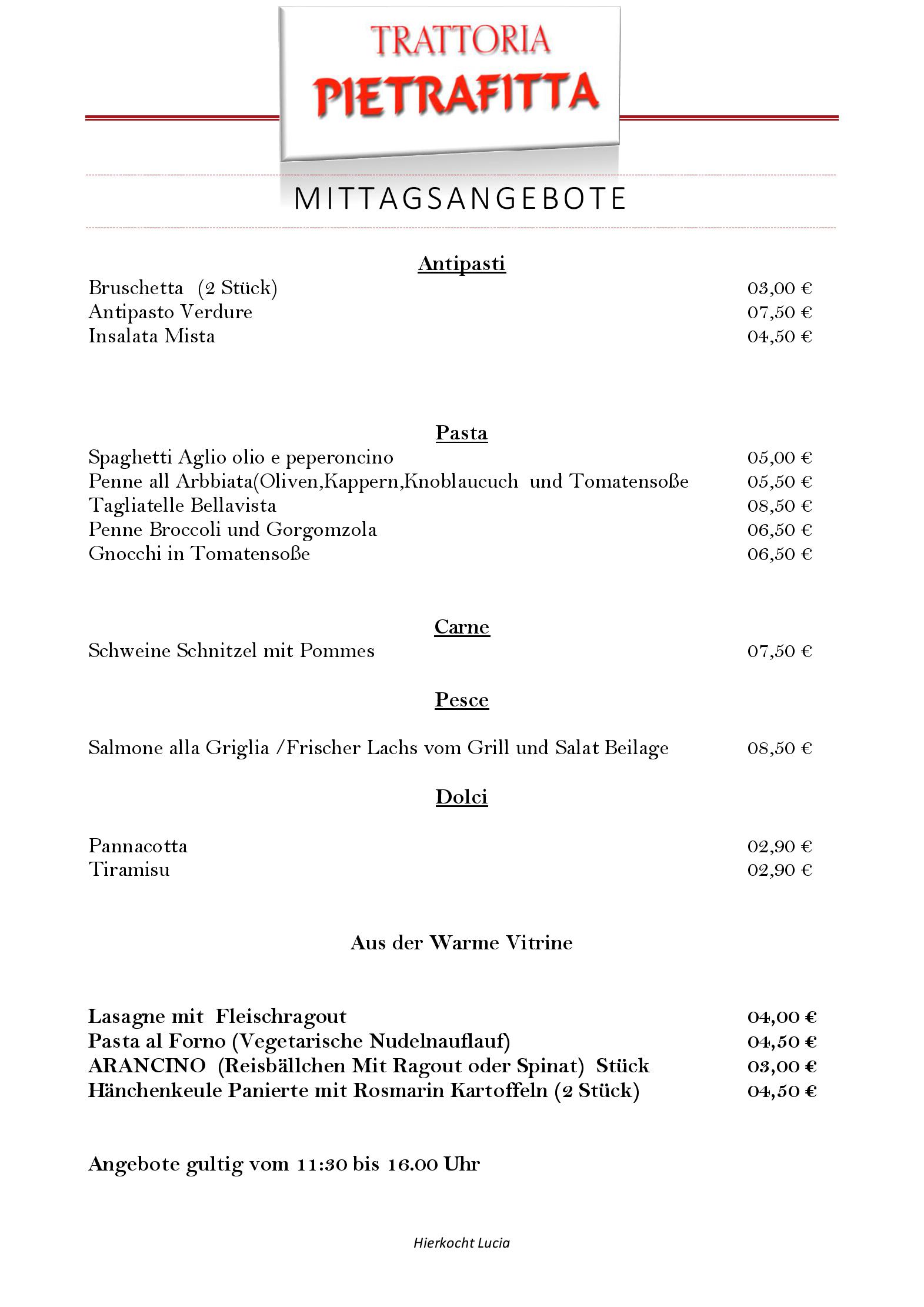Download der Speisekarte des Restaurant Trattoria Pietrafitta in Berlin im PDF-Format