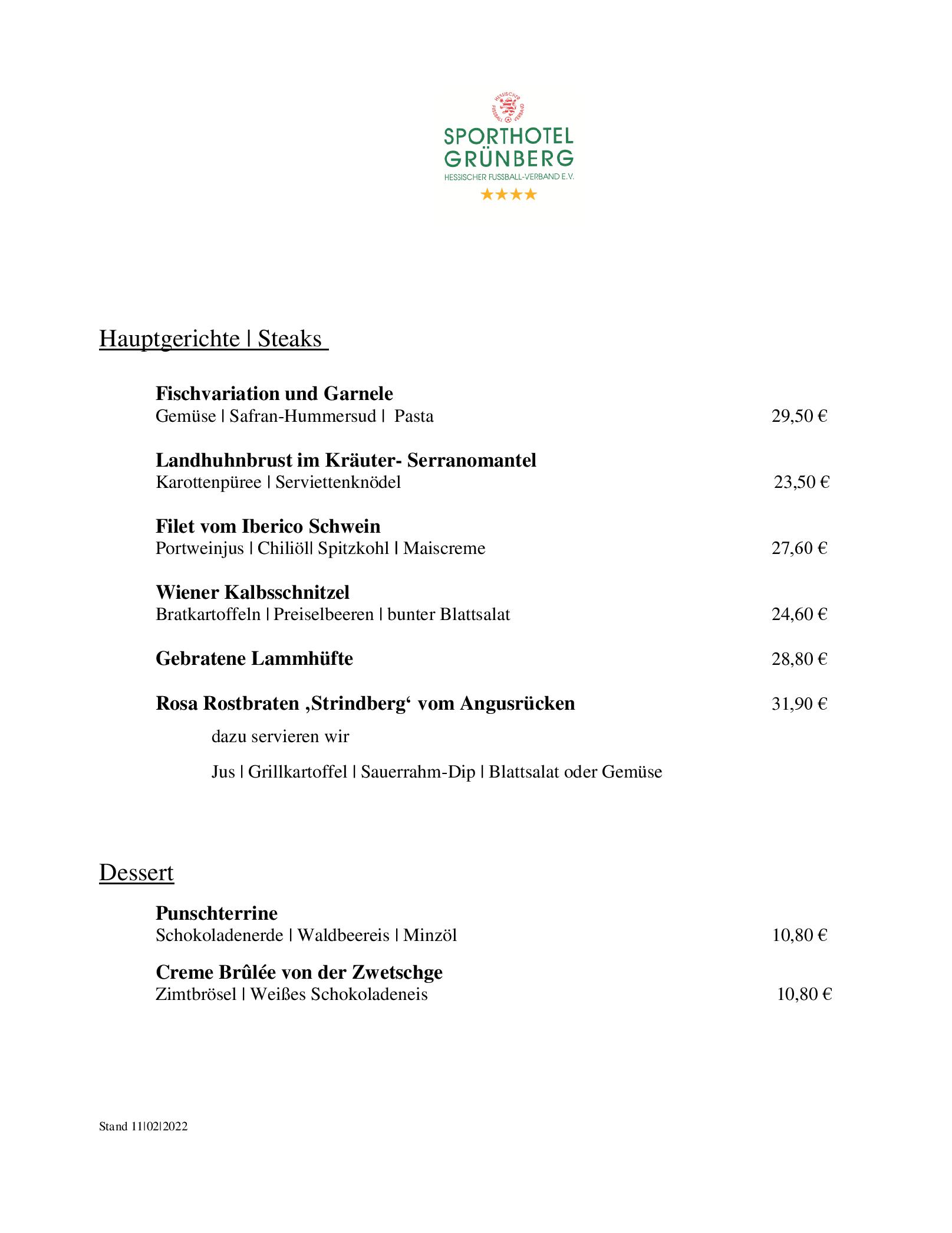 Download der Speisekarte des Restaurant Sporthotel - Grünberg in Grünberg im PDF-Format