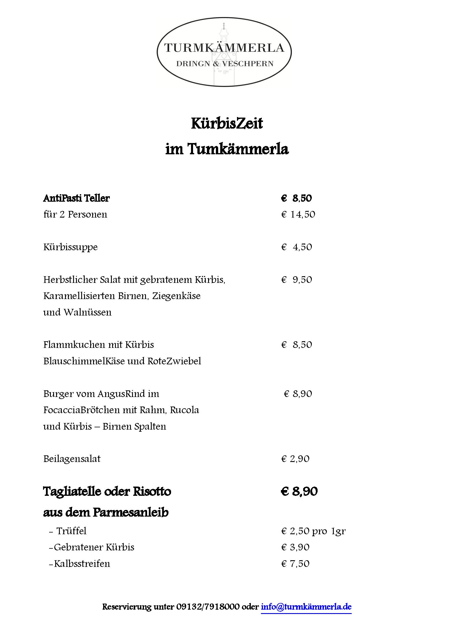 Download der Speisekarte des Restaurant Turmkmmerla - Eventlocation und Catering  in Herzogenaurach im PDF-Format