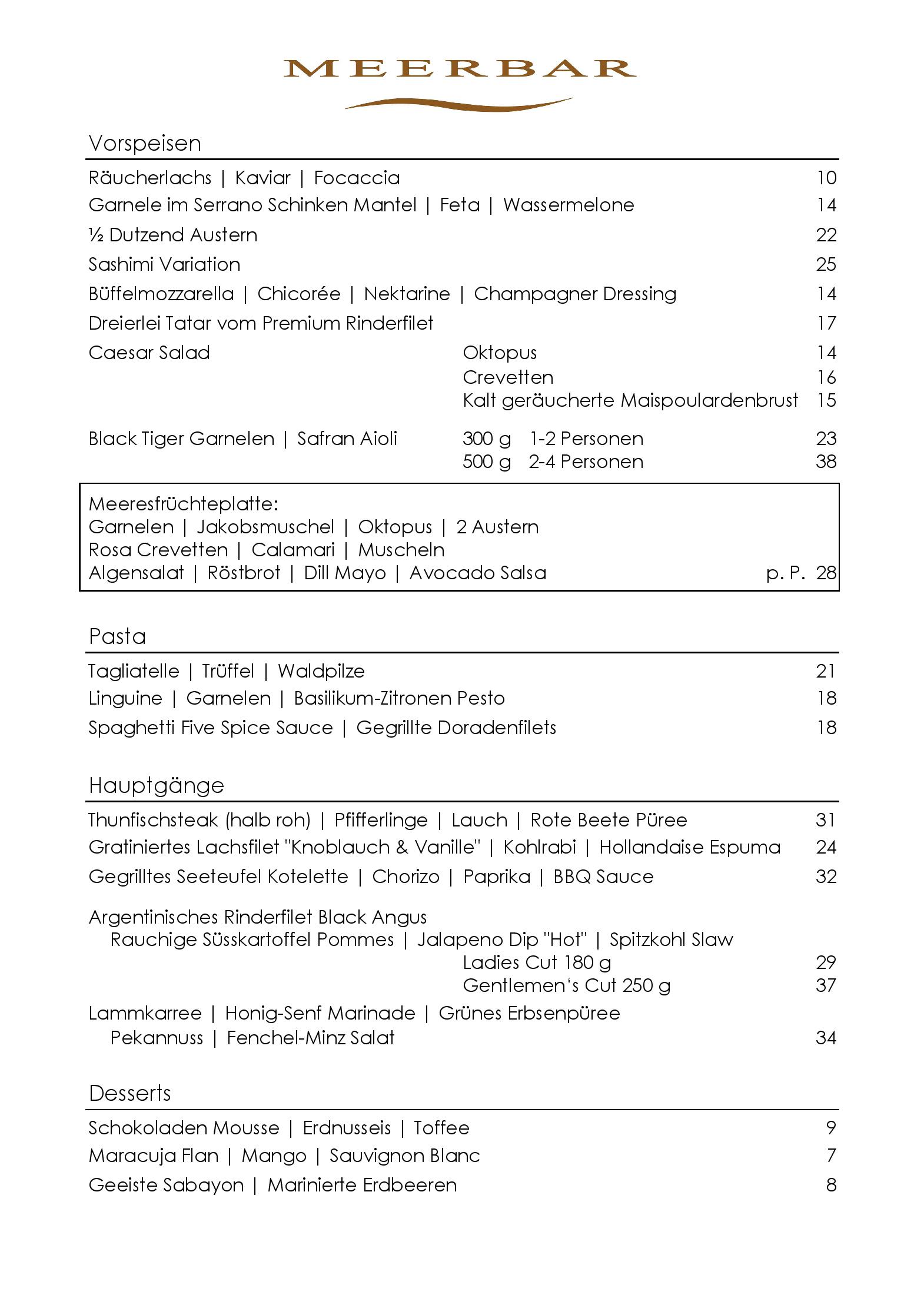 Download der Speisekarte des Restaurant Meerbar in Düsseldorf im PDF-Format