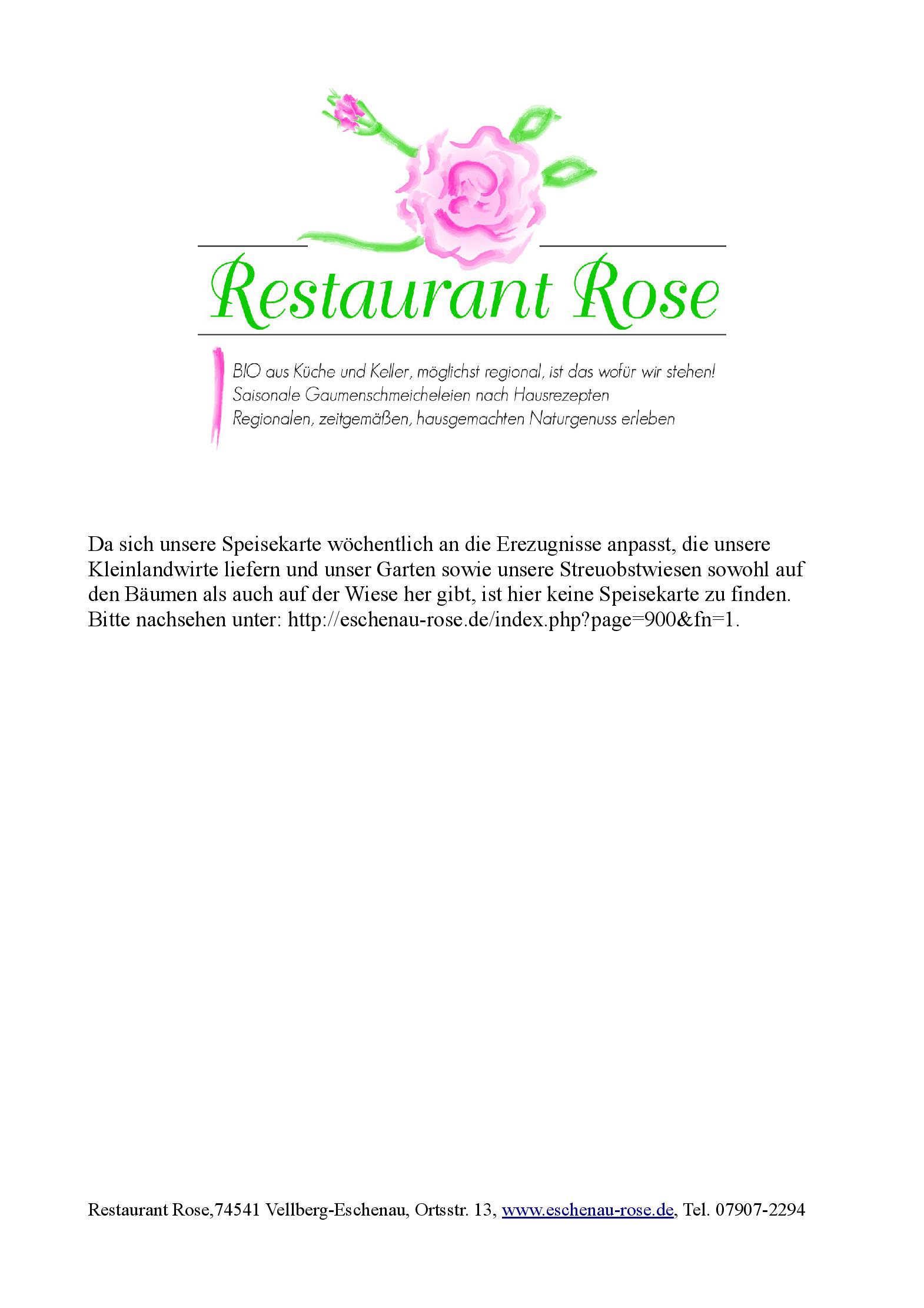Download der Speisekarte des Restaurant Rose in  Vellberg-Eschenau im PDF-Format