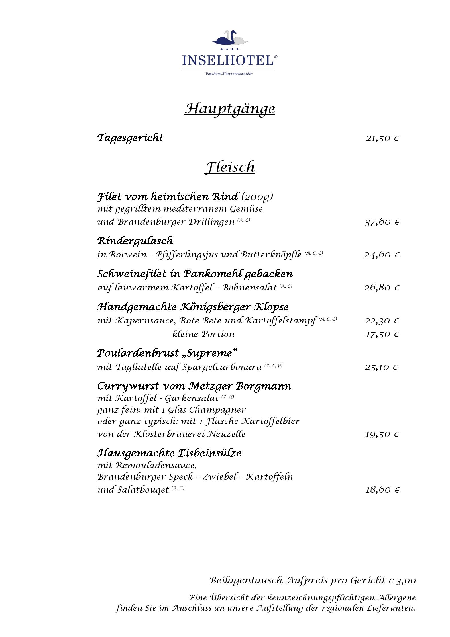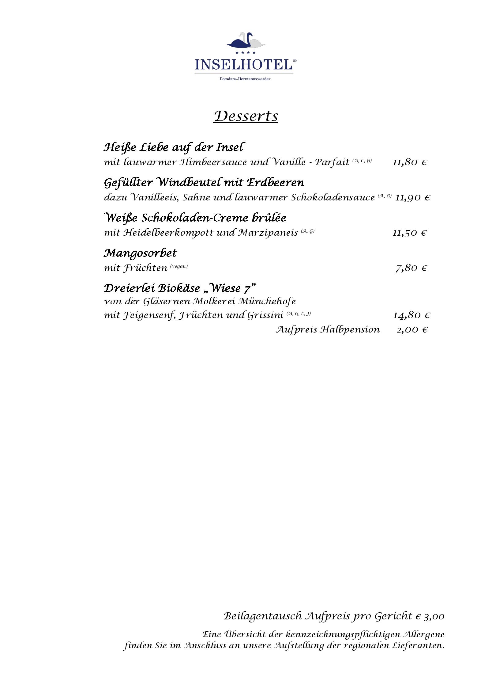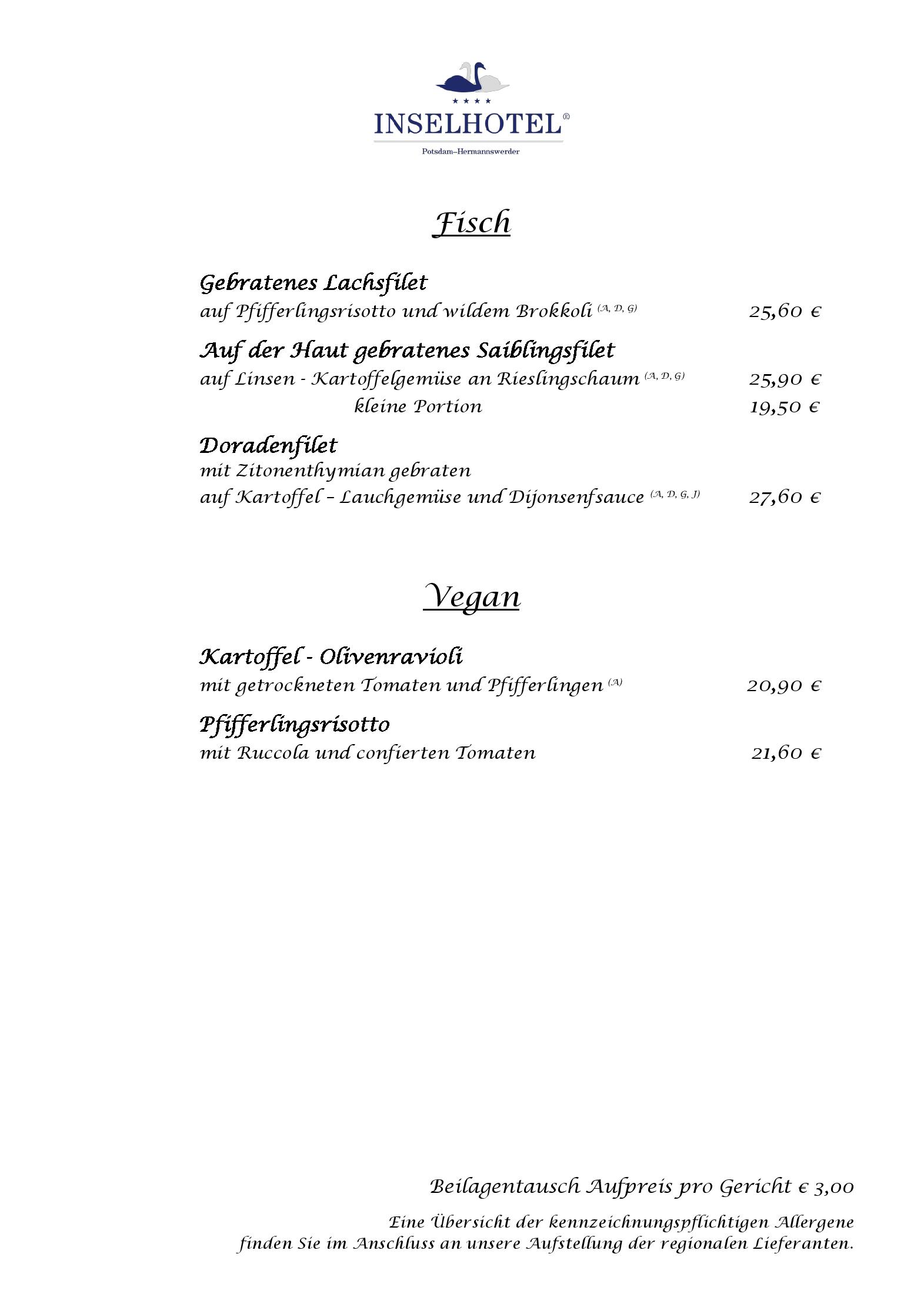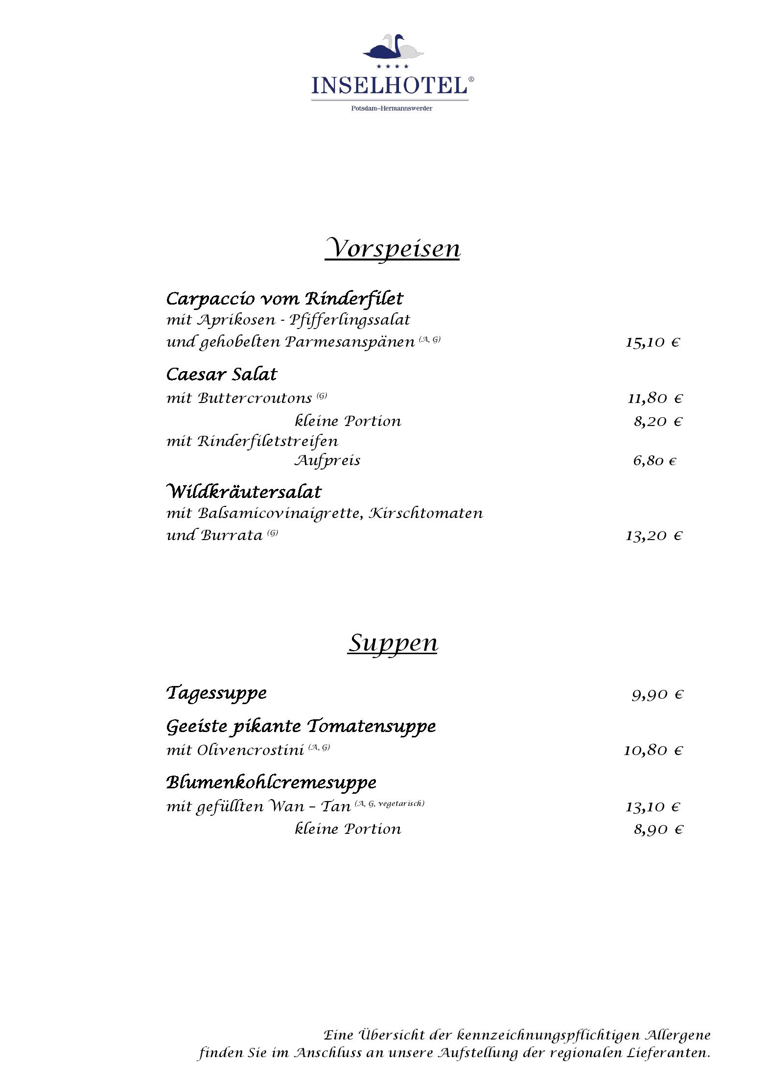 Download der Speisekarte des Seerestaurant im INSELHOTEL Potsdam  in Potsdam im PDF-Format