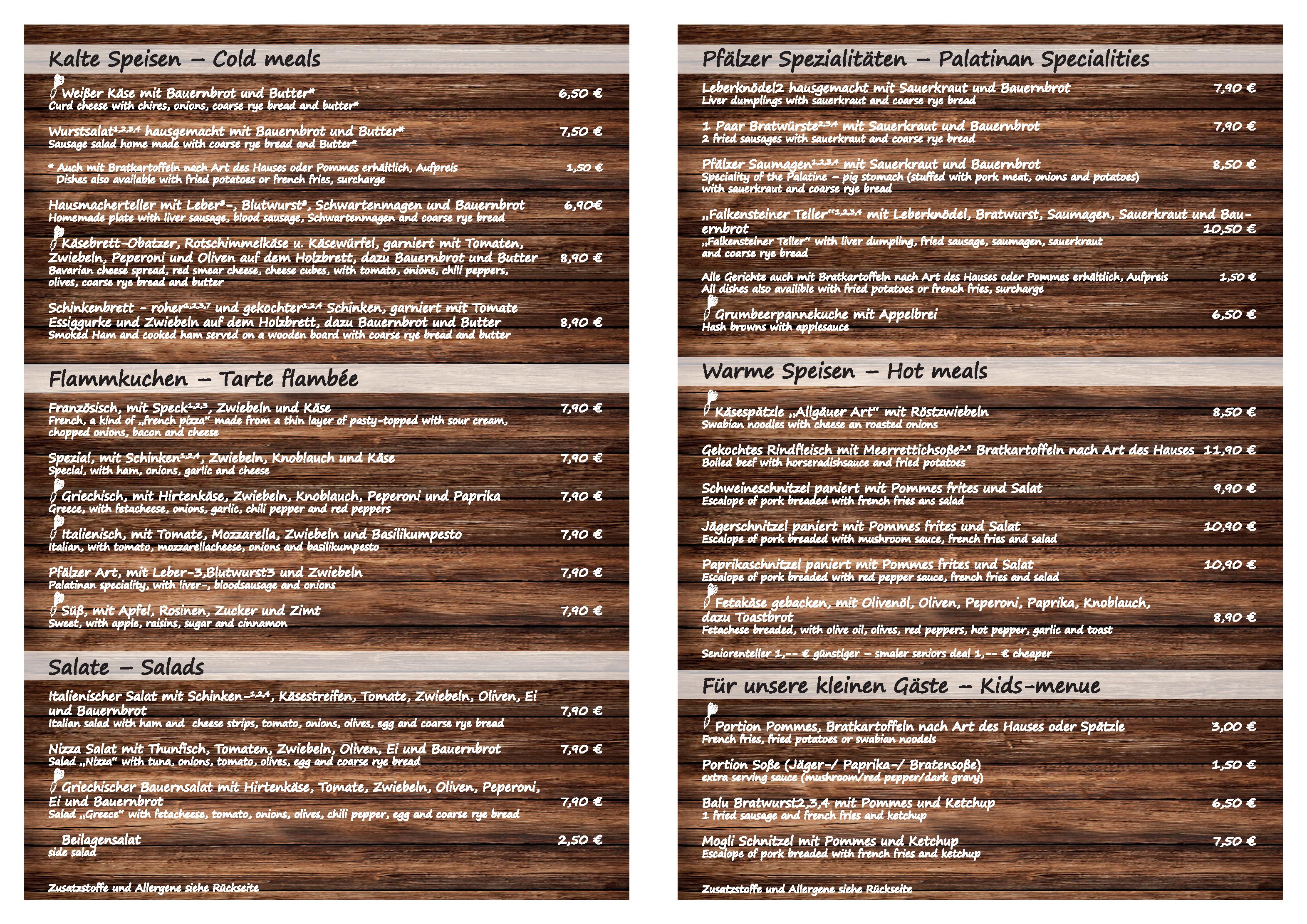 Download der Speisekarte des Restaurant Falkensteiner Hof in Falkenstein im PDF-Format