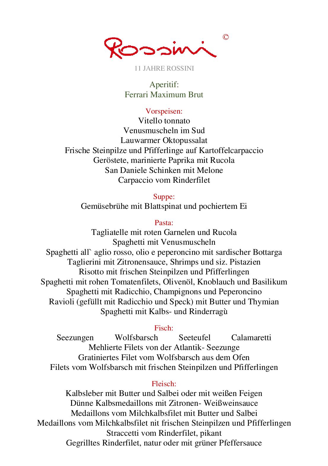 Download der Speisekarte des Restaurant Rossini in München im PDF-Format