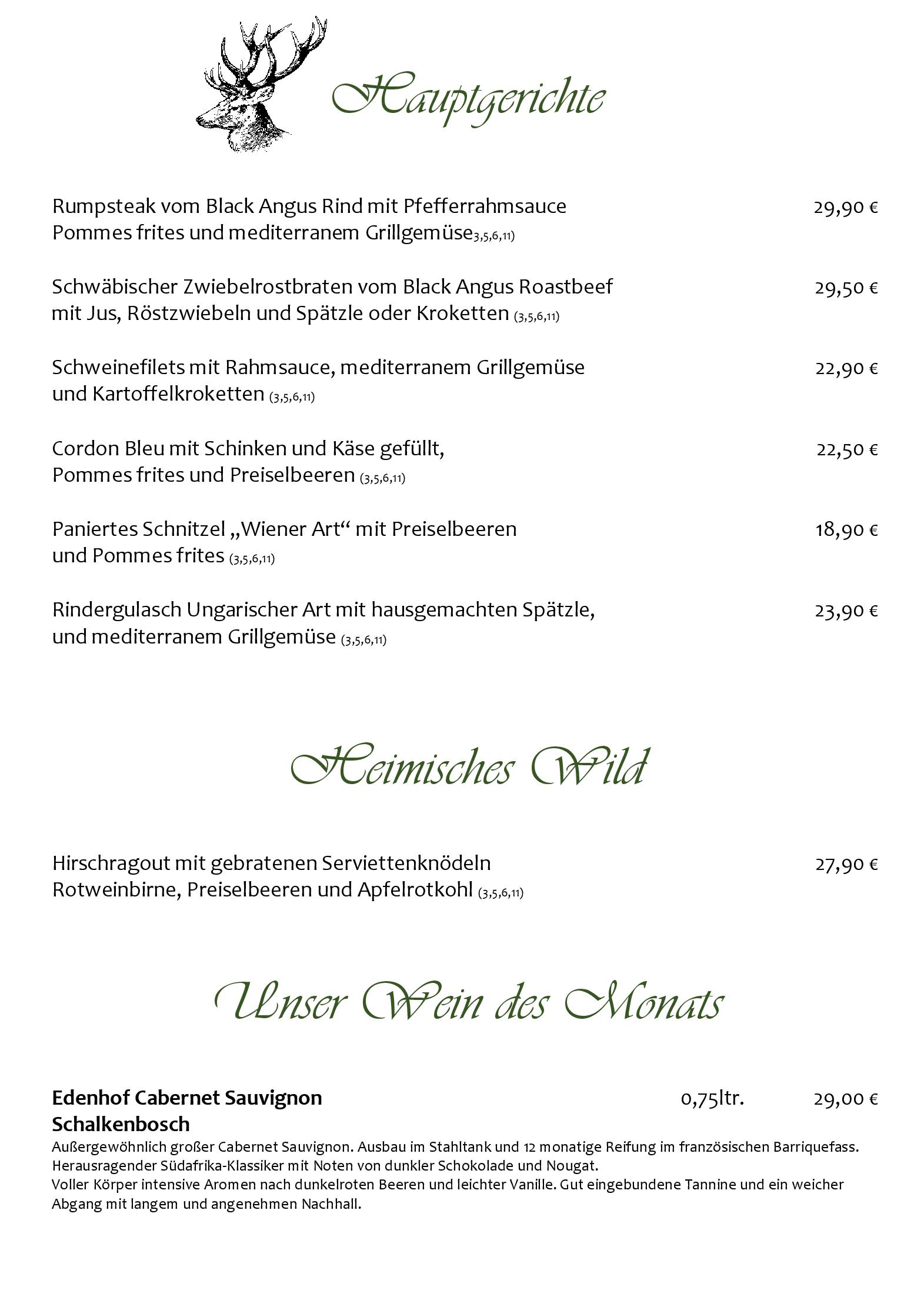 Download der Speisekarte des Restaurant Hotel Hirschen in Menzenschwand im PDF-Format