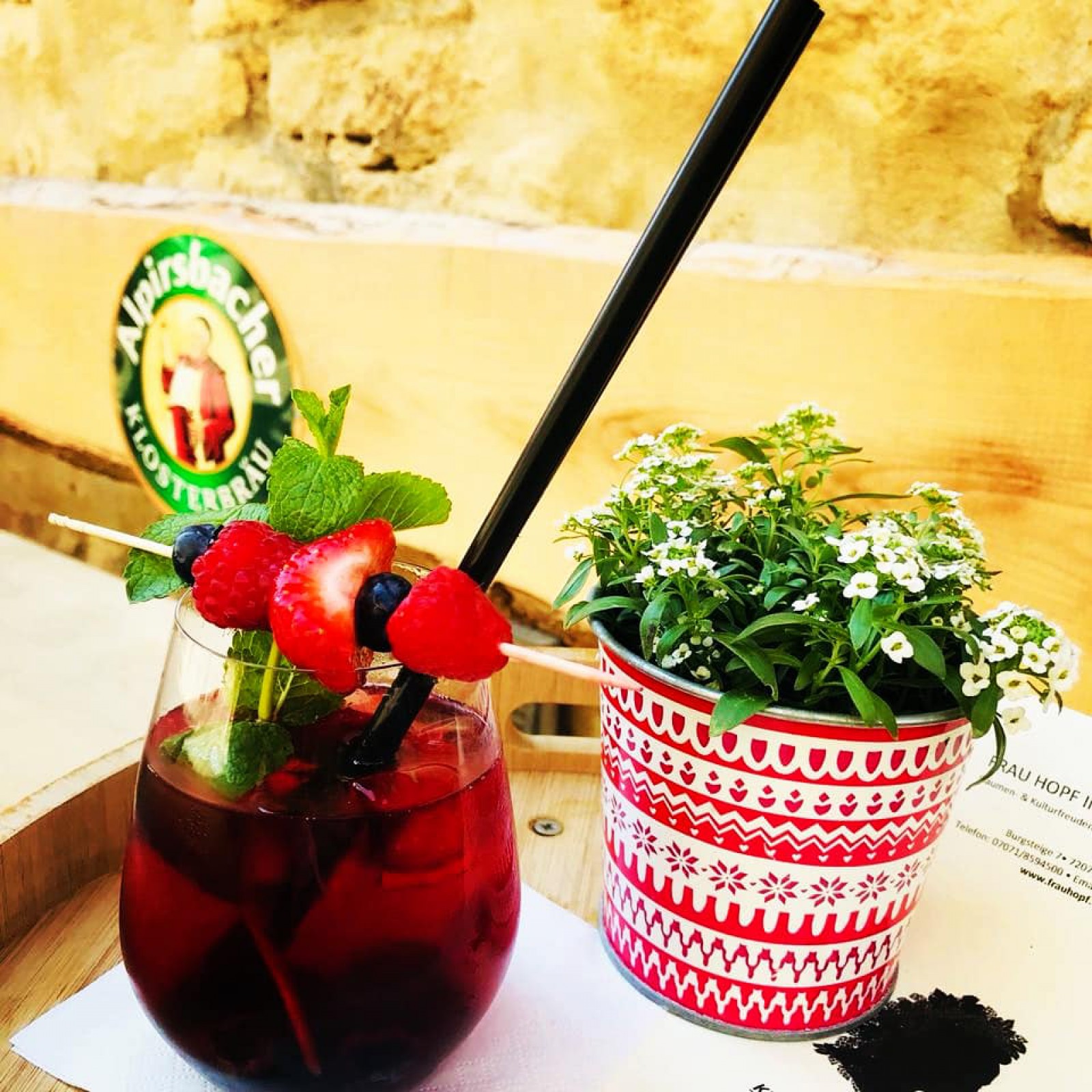 Das direkt am Schloß Tübingen gelegene Lokal bietet mit seinen Spezialitäten in jeder Hinsicht etwas Besonderes. Feine Salate, heiße Suppen, mediterrane Pastagerichte, hausgemachte Flammkuchen, aber auch schwäbische Klassiker und besondere Tagesgerichte bieten für jeden Geschmack das Richtige - abgerundet durch bestes Bier aus 500-jähriger Brautradition aus dem Schwarzwald. Auch ein hausgemachtes Stück Tiramisù mit einer Tasse Kaffee laden zum Verweilen in den historischen Gemäuern und auf der Terrasse ein. Im Keller befindet sich ein Grand Piano mit Livemusik Aktionsfläche und einer Cocktailbar für Nachtschwärmer. Hier darf bis in die späten Stunden gechillt werden bei lässiger Baratmosphäre und ausgesuchten Events & Konzerten. Feste Veranstaltungsreihen prägen das Erscheinungsbild der Traditionsgaststätte im erdigen Eichengewand. Ausgefallenes Design in der Inneneinrichtung und stilvoll im Geschmack der Präsentation. Frau Hopf freut sich auf Ihren Besuch.