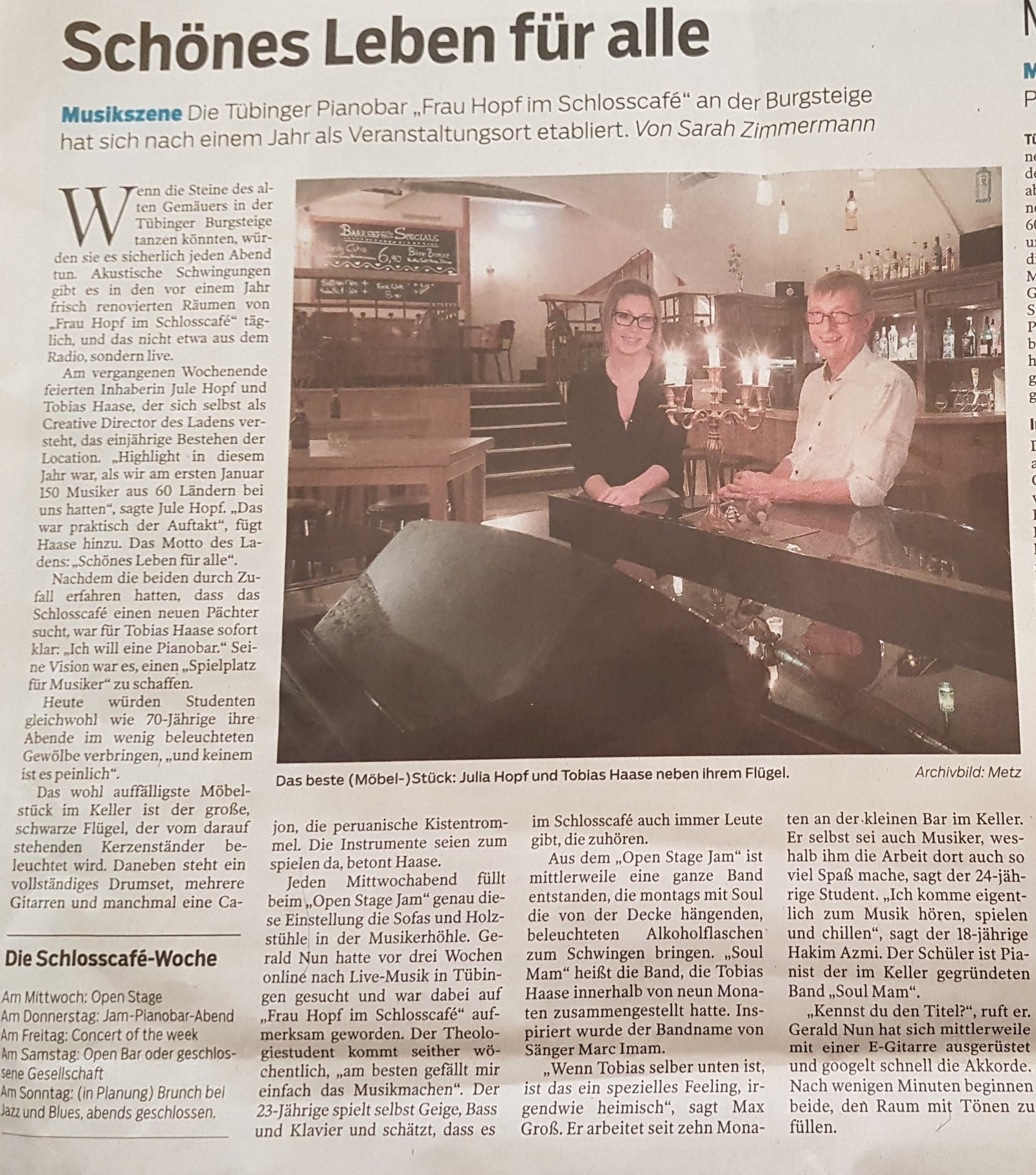Restaurant Frau Hopf im Schloßcaf in TübingenRestaurant (Restaurant Frau Hopf im Schloßcaf in Tübingen)Wir suchen immer tolle Musiker :-)