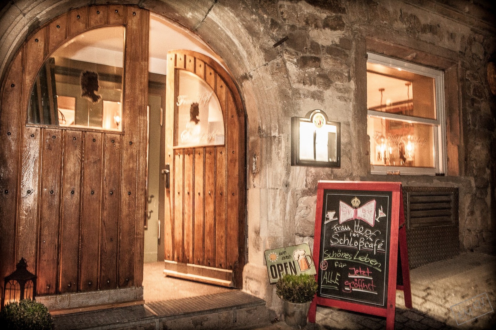 Frau Hopf im Schloßcafé - das heißt leckeres Essen & Bier, Blechkuchen & Kaffee, Liveentertainment mit Pianobar im Gewölbekeller und auf unserer Sonnenterrasse! Feine Cocktails & Haus-DJ!