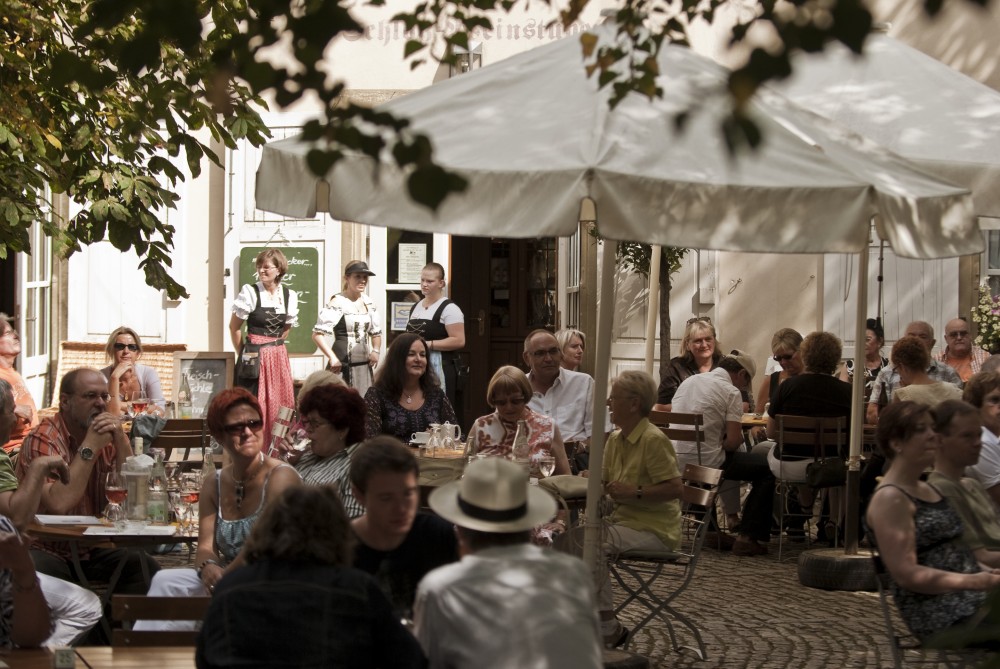 Schloss Hallburg bei Volkach, Weinrestaurant und Romantikgarten.
