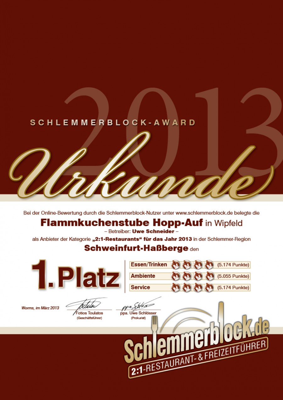Restaurant-Bewertungen für Flammkuchenstube Hopp-Auf in Wipfeld