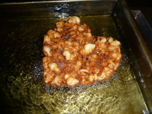 Betrachtet man sich das Gebäck erkennt man sofort, warum die Backmischung „Kringelfritz“ getauft wurde. Das Gebäck ist goldgelb und besteht aus nahezu unzähligen Kringeln. Diese entstehen wenn der Teig im heißen Öl fritiert wird. >Kringelfritz< eben!