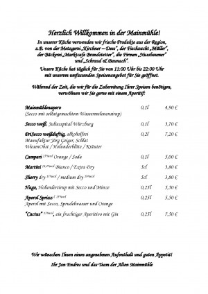 Aktuelle Speisekarte von Alte Mainmühle in Würzburg