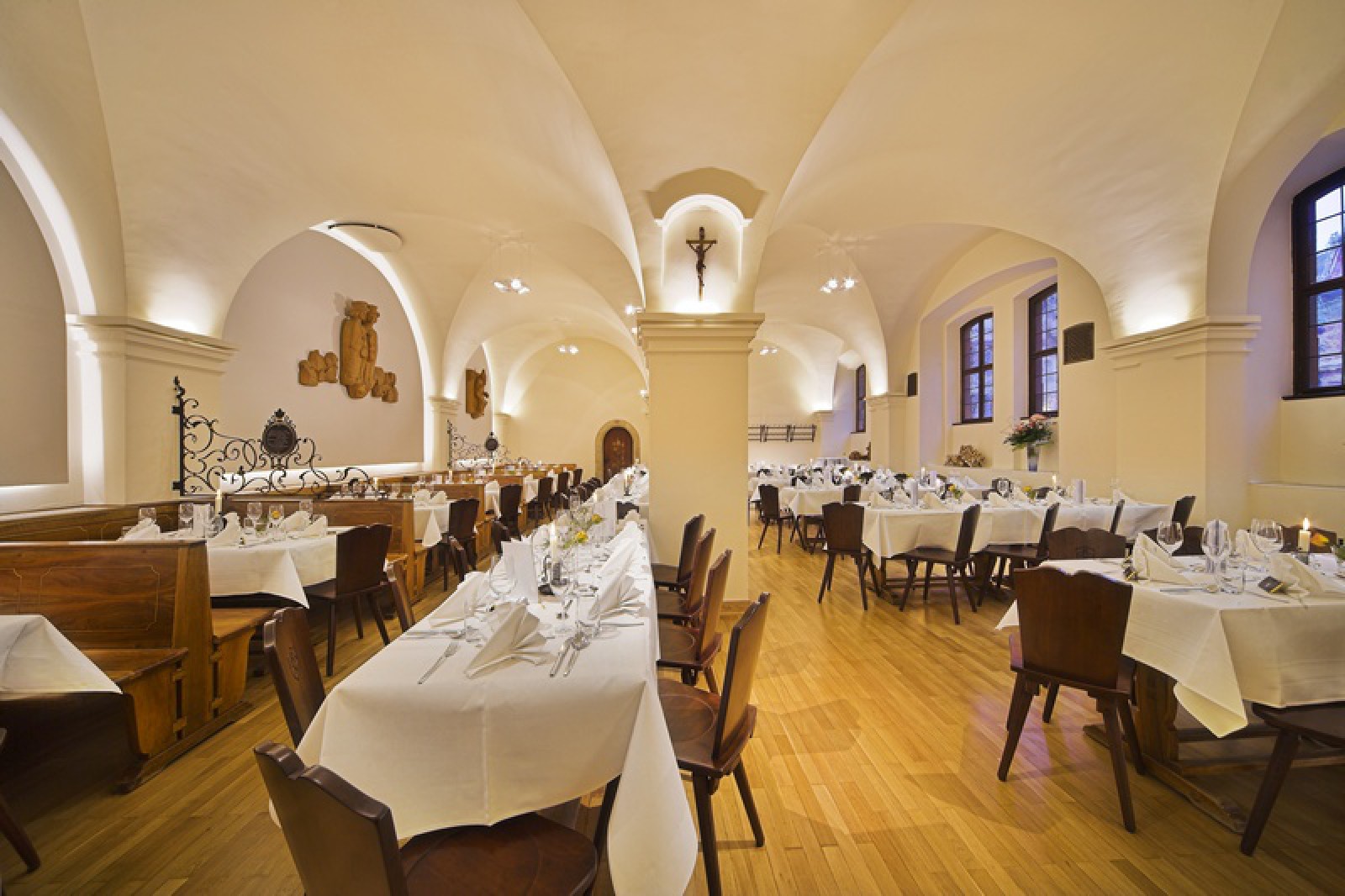 Herzlich willkommen im Restaurant des Bürgerspitals zum Hl. Geist in der Würzburger Altstadt. Die kulinarische Vielfalt endet übrigens nicht an den fränkischen Rebhängen. Auf der Karte finden sich ebenso leichte Gerichte aus internationaler und mediterranen Küche.