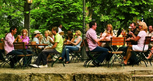 Der Biergarten bietet 650 bediente Plätze und 350 Plätze mit Selbstbedienung, bei denen nach bayerischer Biergartentradition die Brotzeit mitgebracht werden darf. Hier stehen auch 2 Gasgrills zur Verfügung, wo selbst mitgebrachtes Grillgut selbst gebrutzelt werden kann. Hierfür ist eine Gebühr von 12,00 € je Grill fällig. Um Reservierung hierfür wird gebeten.